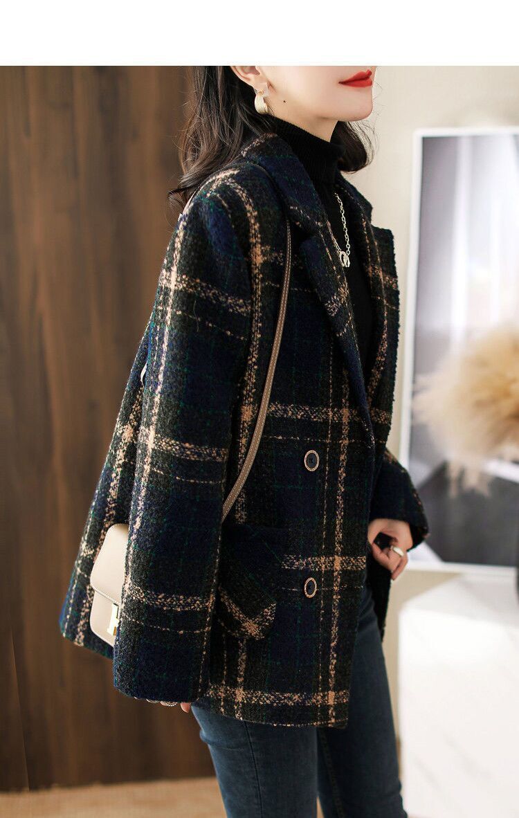 新しいチェック柄スーツウールコート秋冬 2022 女性の韓国スタイルルーズレトロチェック柄ウールコートミッドレングス