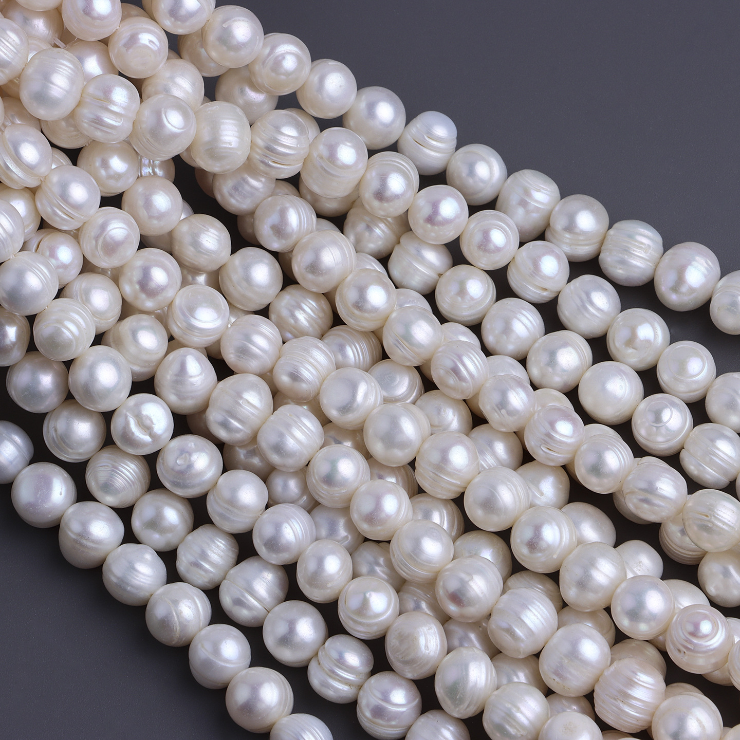 强光10-11mm不规则螺纹近圆珠 天然淡水珍珠散珠 diy手工材料配件