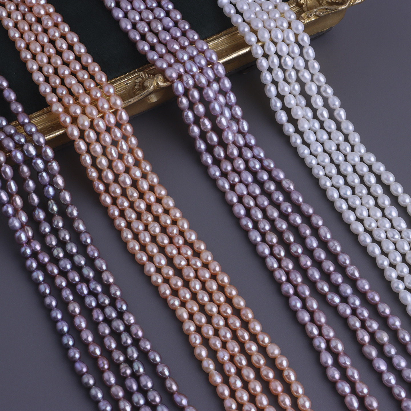 高性价比强光4-5mm米珠 天然淡水微纹米形小珍珠串珠 diy饰品材料