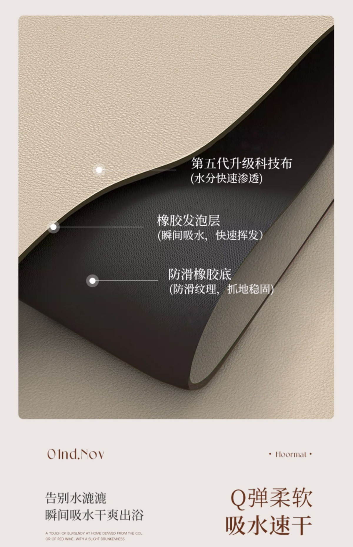 高級感浴室マット吸水速乾足マットマット珪藻泥トイレトイレ入口滑り止め汚れ防止