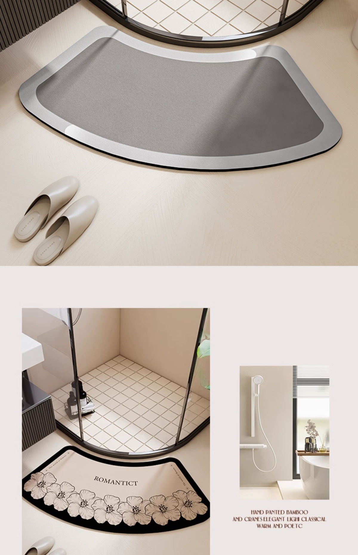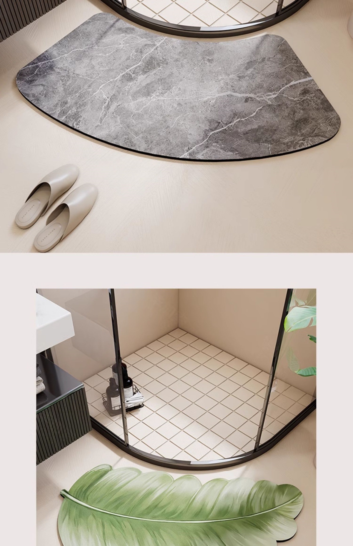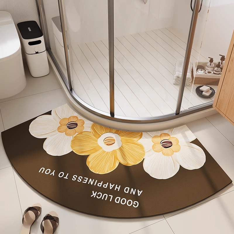 无印弧形浴室地垫扇形硅藻泥吸水脚垫厕所淋浴房门口圆弧防滑