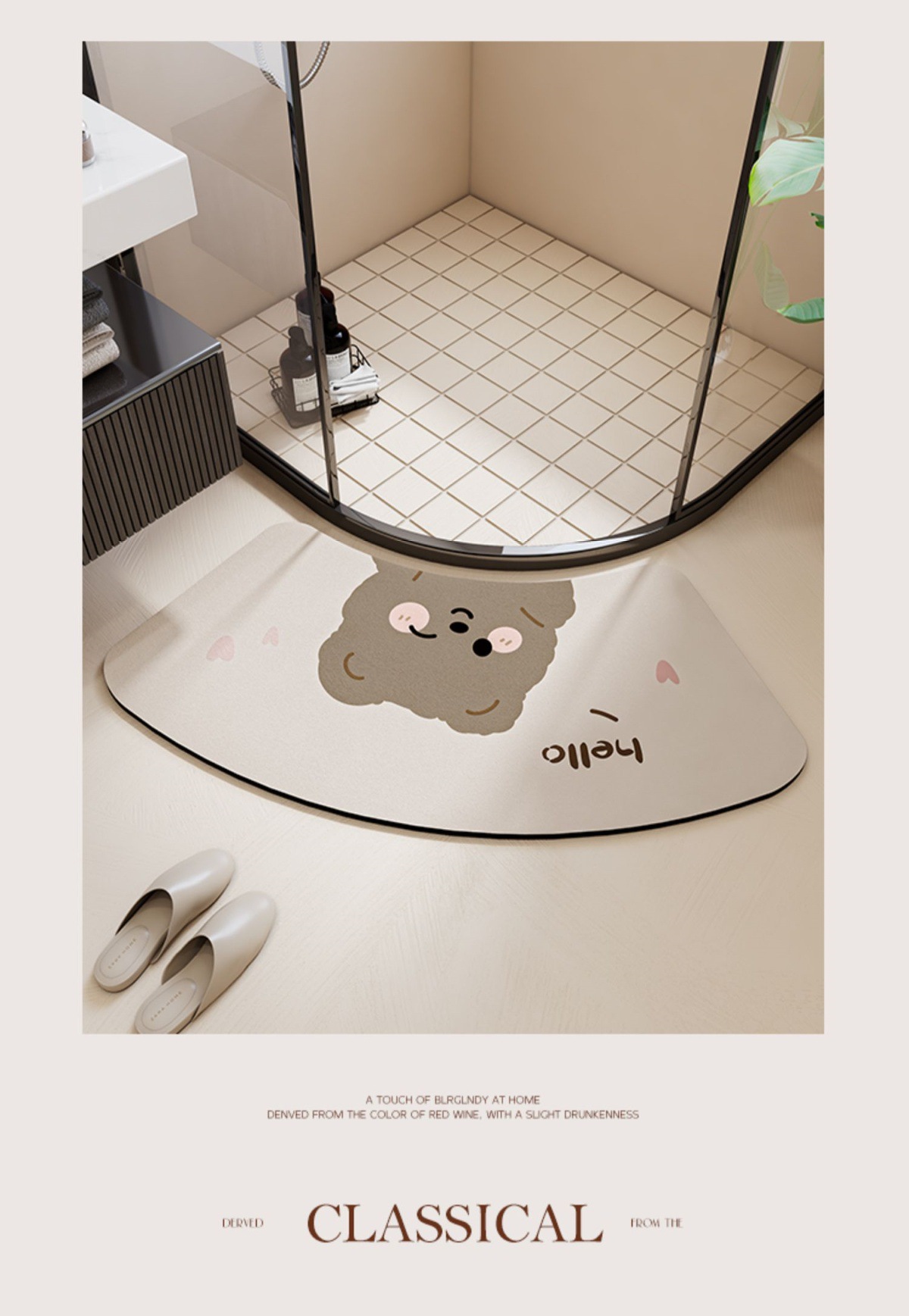 浴室弧形硅藻泥吸水垫防滑速干地垫卫生间淋浴厕所门口家用小地毯