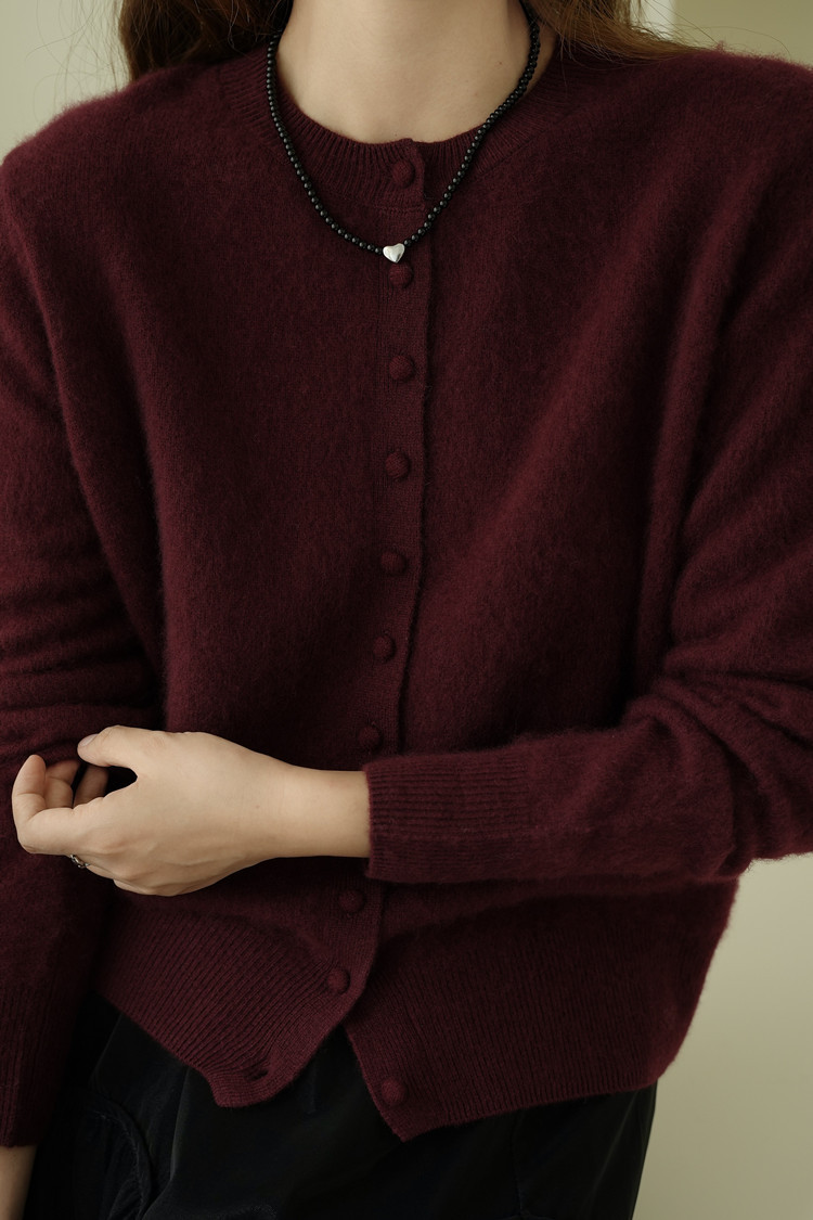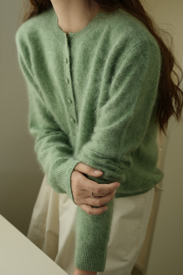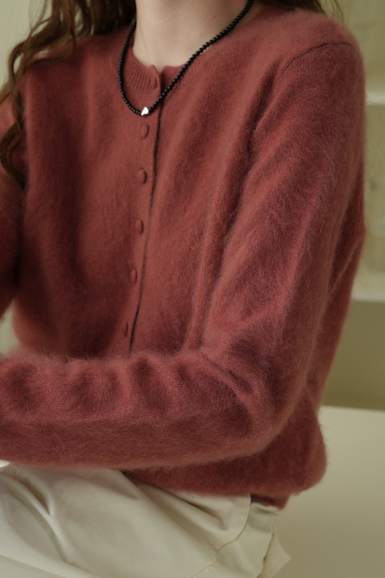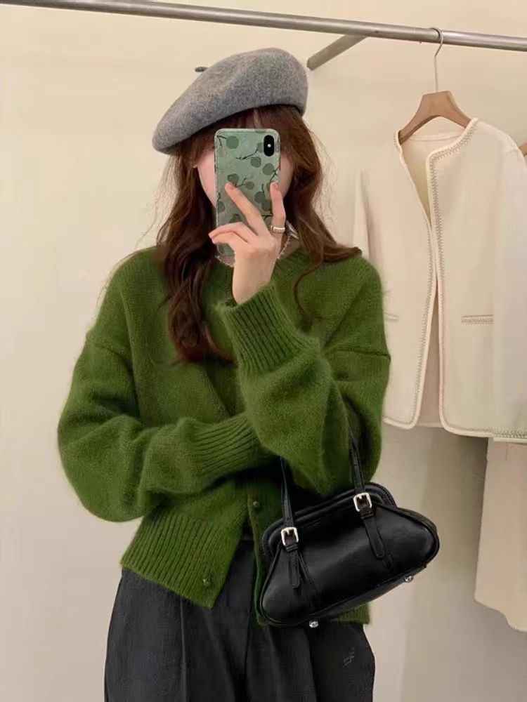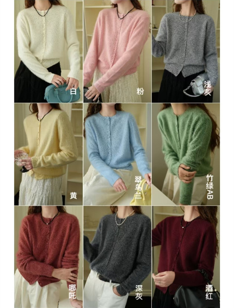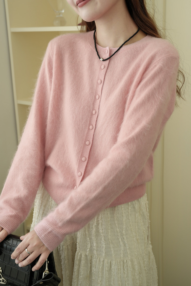软糯减龄拉绒开衫包扣羊绒羊毛拉毛外套圆领宽松毛衣女秋冬百搭粉