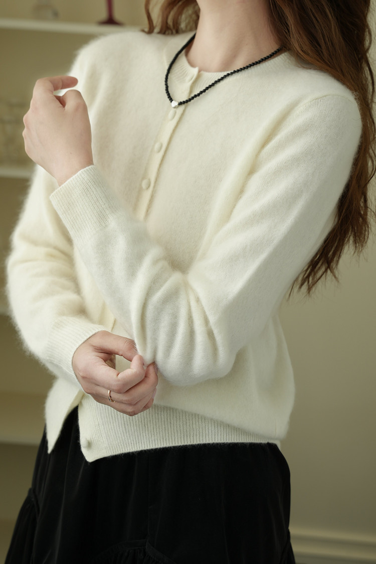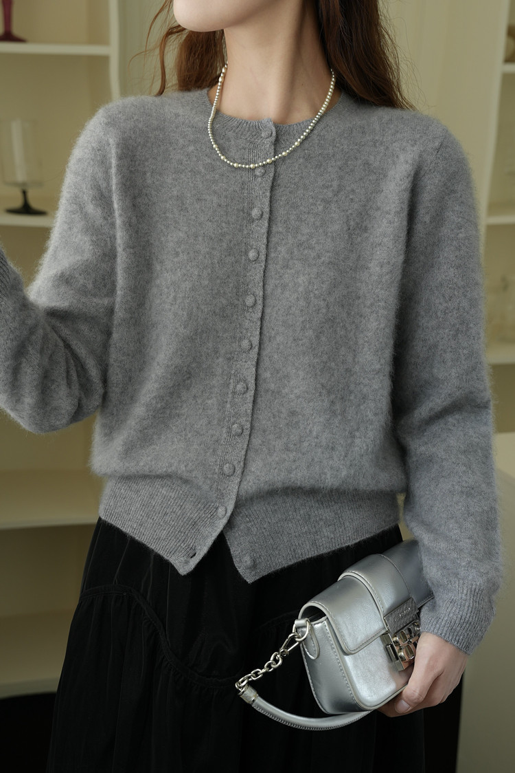 2025秋濮院羊毛羊绒拉毛圆领百搭毛衣开衫外套女打底老钱风女装