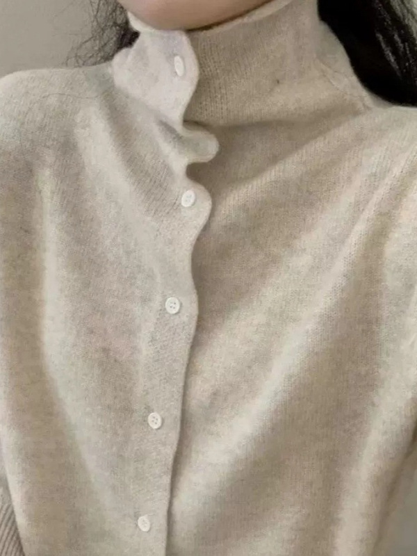 25秋冬新款韩系高领毛织开衫保暖羊毛针织衫毛衣纯色洋气百搭外套