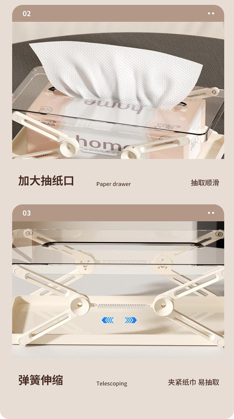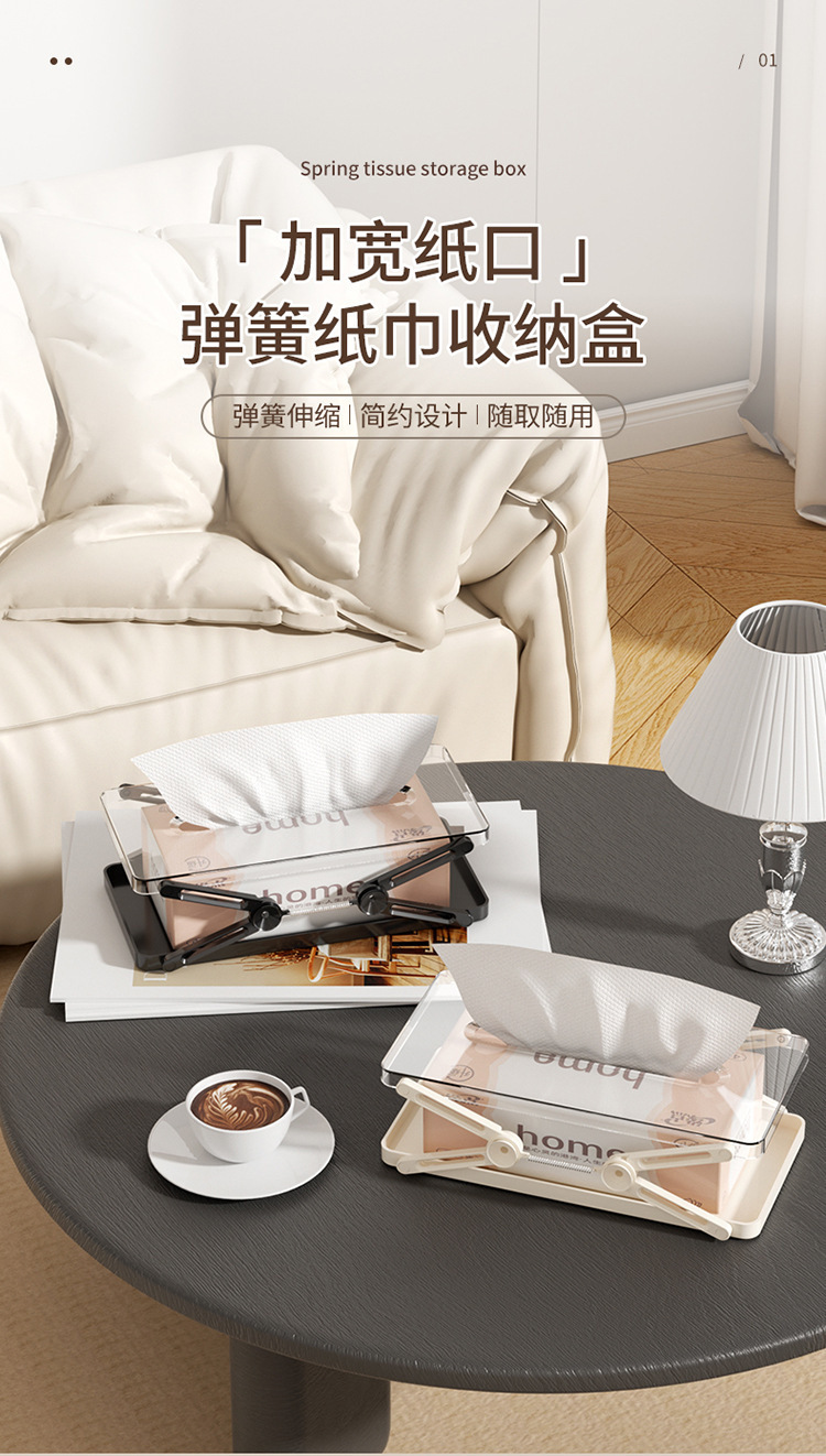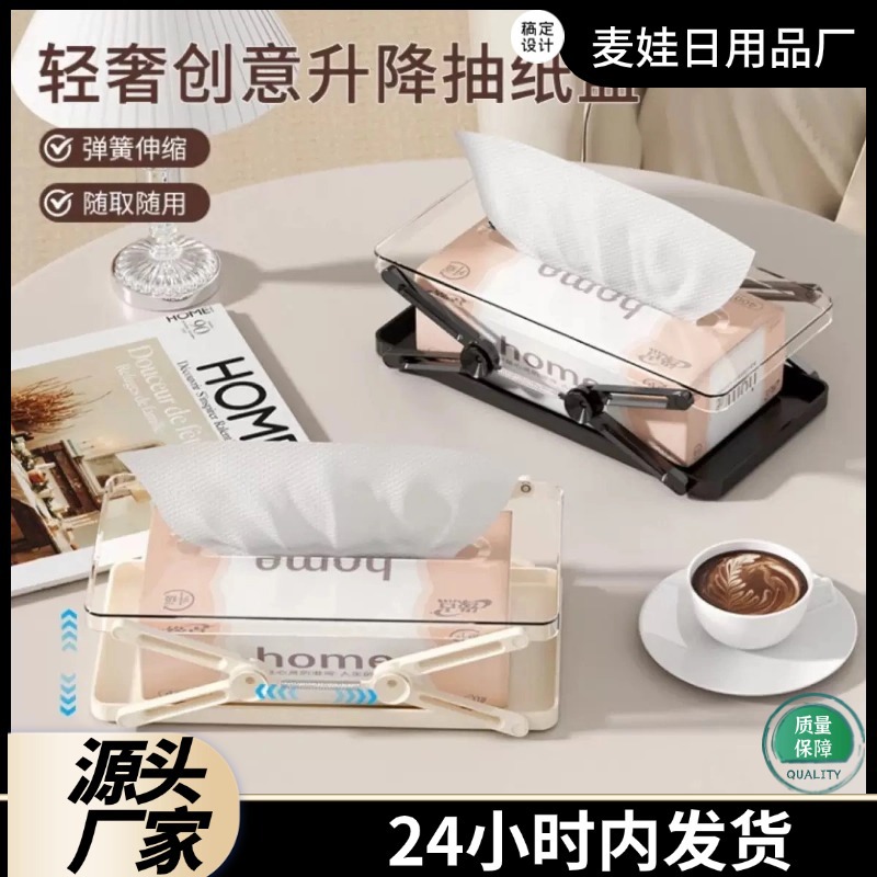 新款可升降纸巾盒弹簧抽纸盒客厅茶几家用可折叠餐巾纸盒收纳盒批