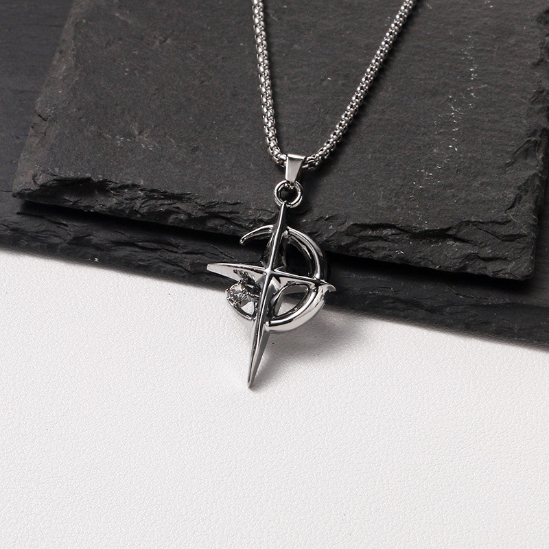 甜酷轻奢星月项链小众四芒星吊坠星系项链冷淡风十字架锁骨毛衣链