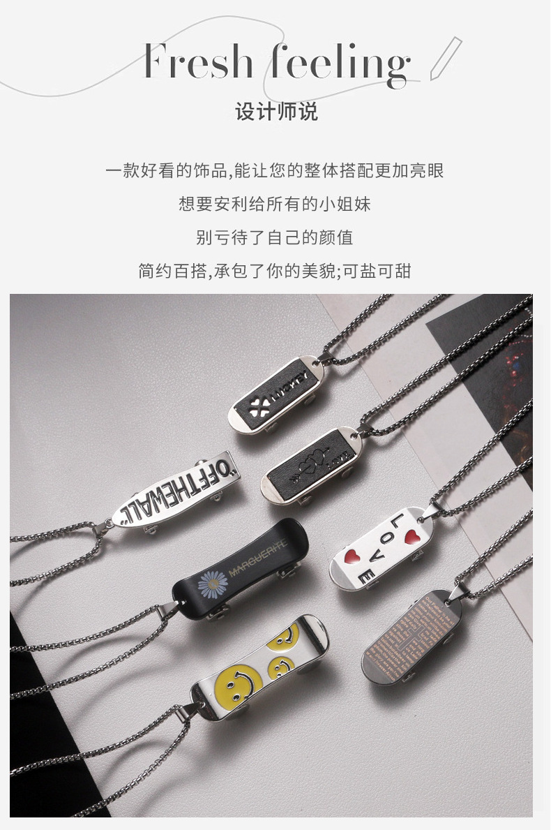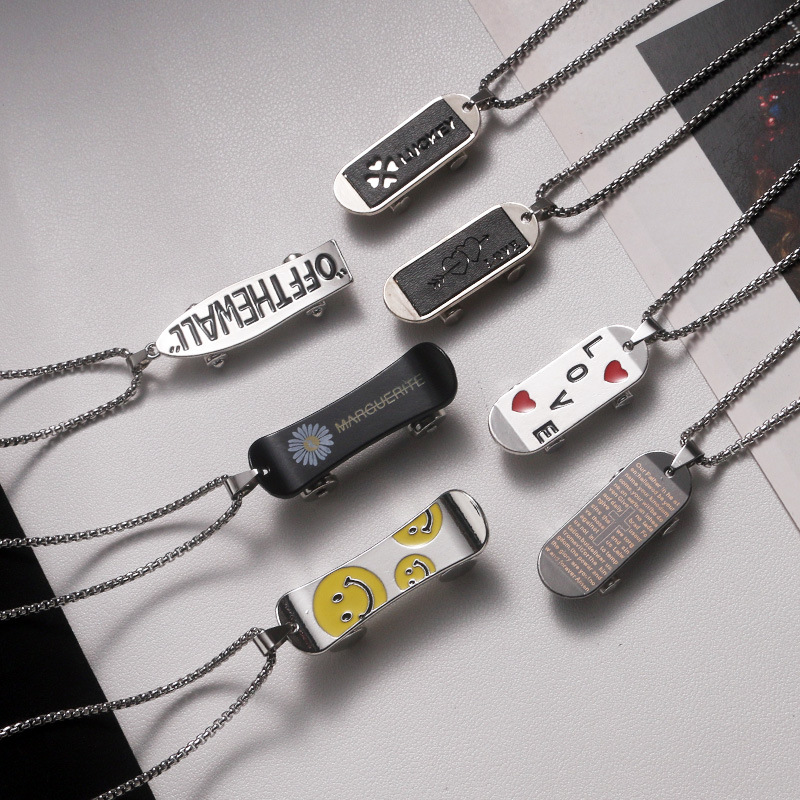 欧美滑板车不锈钢项链嘻哈风男女款珍珠吊坠复古挂件合金饰品批发