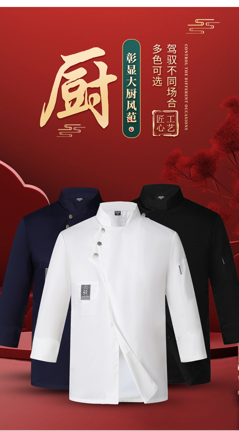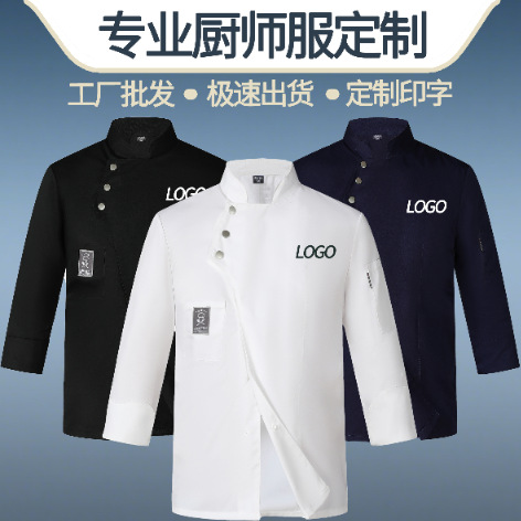 高端厨师工作服厂家定制印字餐饮烘焙西餐后厨中式厨师长专用工衣