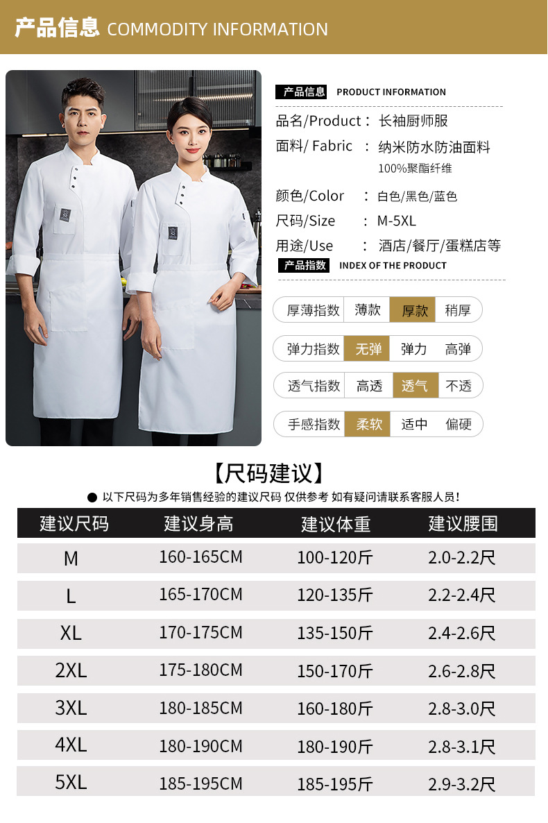 ケータリングシェフオーバーオール長袖スーツメンズ秋冬ホテルレストランキッチン防水シェフカスタムクロスボーダー