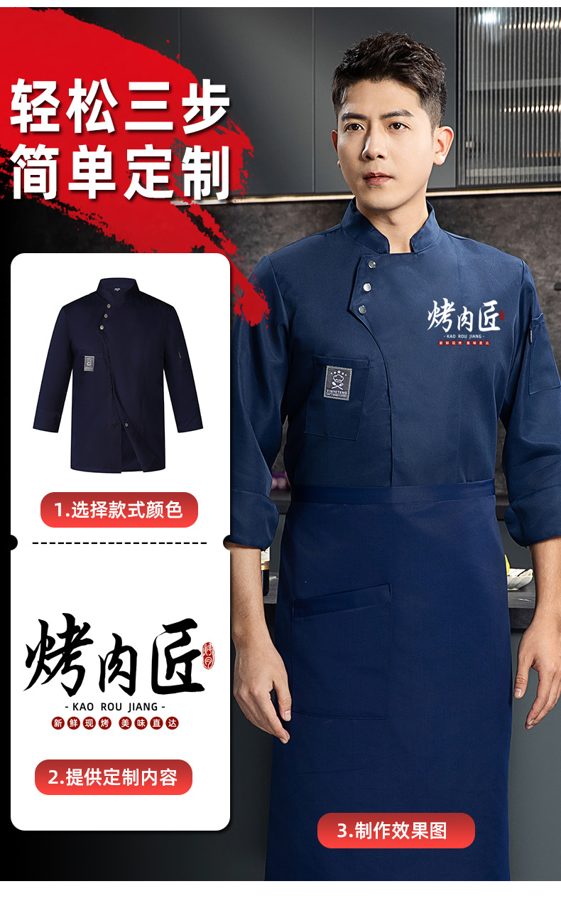 厨师工作服定制印字餐饮餐厅后厨房纯色防水工装男定做亚马逊跨境