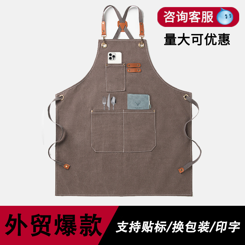 工場直売厚手デニムキャンバスエプロン汚れ防止画室クロスボーダー輸出卸売オーダー印刷ロゴ
