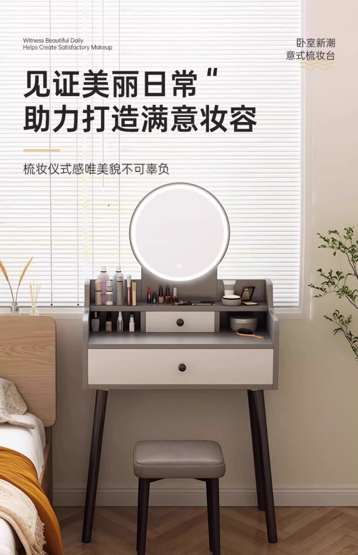 梳妆台卧室现代简约2025新款小型化妆桌主卧迷你款床头窄边化妆台
