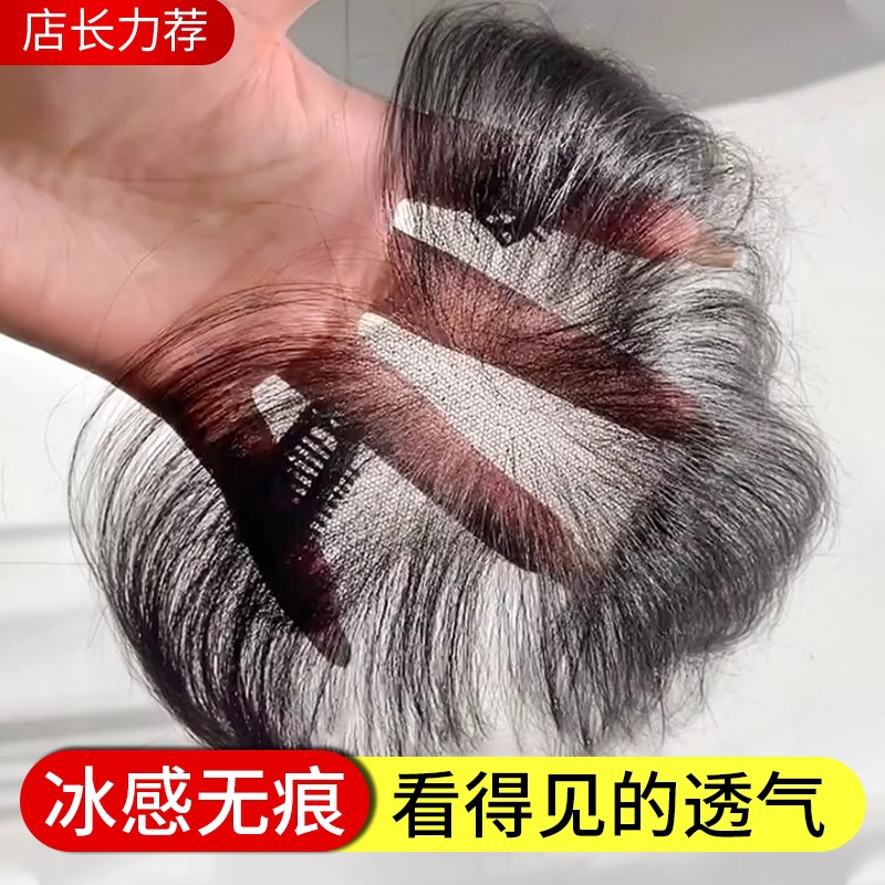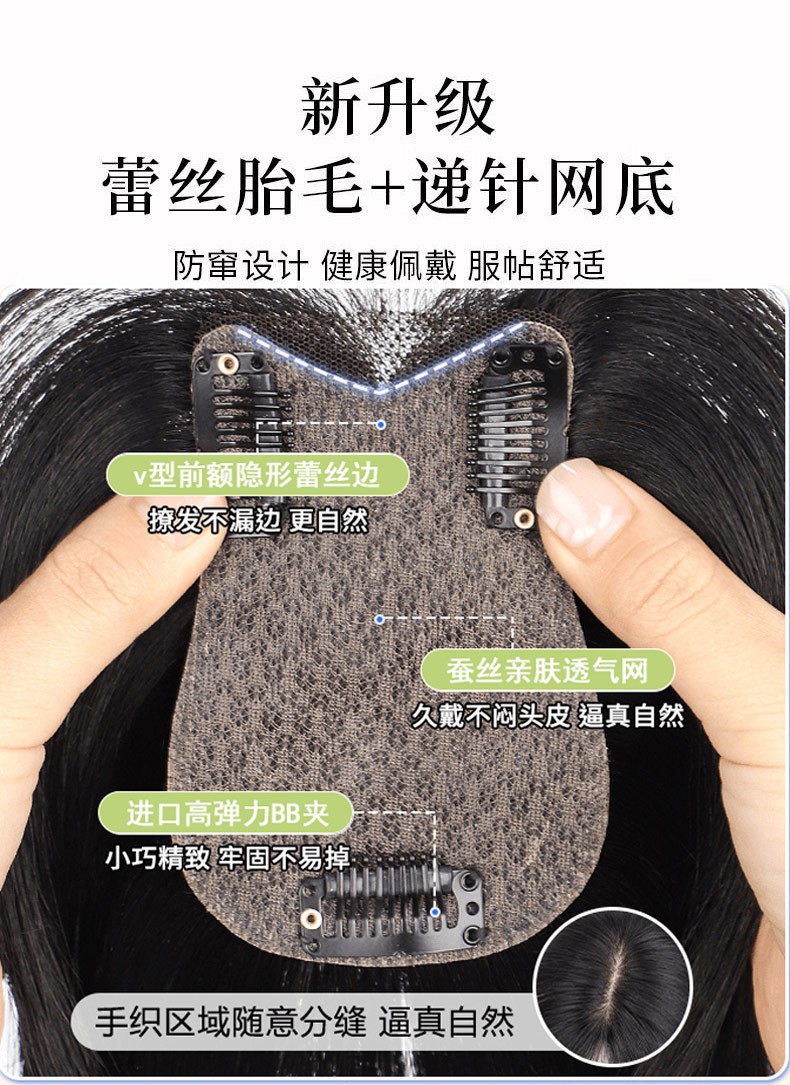 假发女片头顶真发轻薄无痕前额手织蕾丝网遮白发蓬松增发量补发片