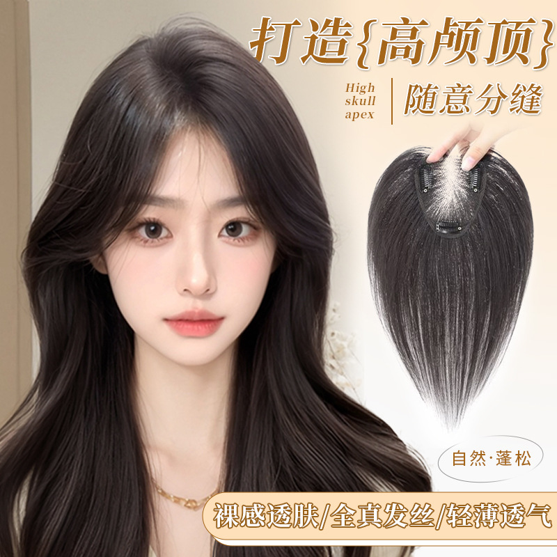 许昌假发女头顶自然无痕高颅顶全真发蓬松增发量轻薄遮白发补发片