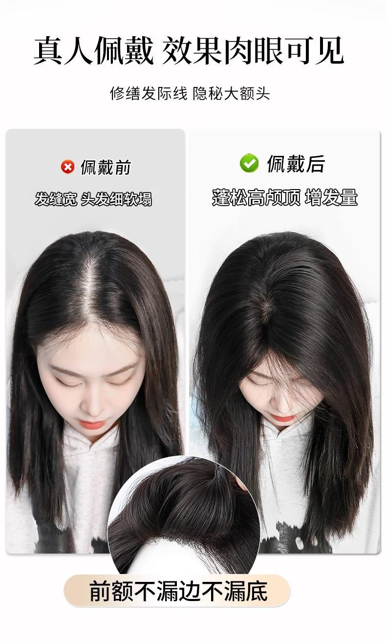 隐形前额无痕假发片女头顶蓬松透气自然逼真高颅顶全真发补发片女