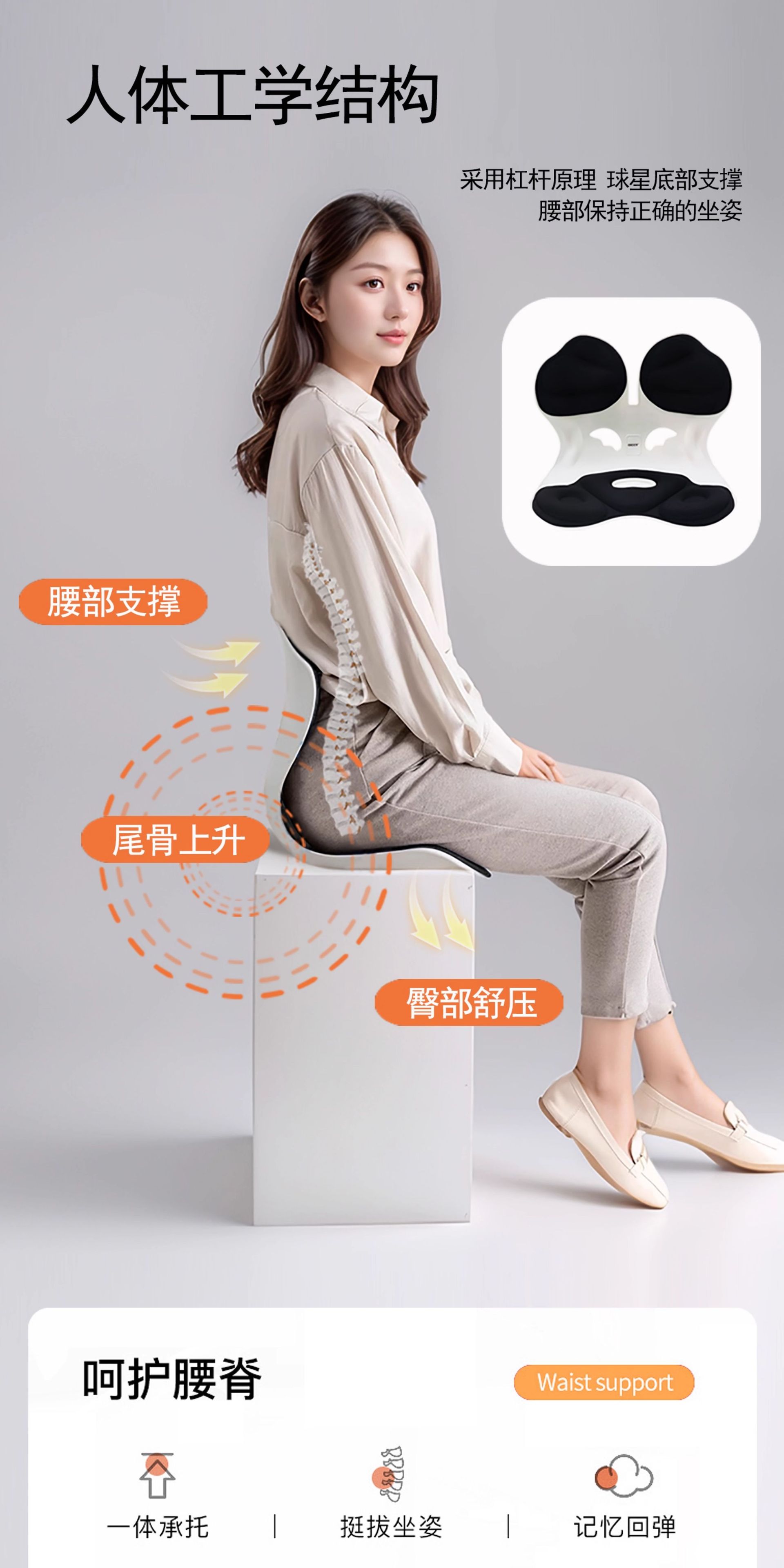 OICCY奥栖护腰坐垫座姿椅靠垫腰部支撑人体工学椅久坐神器防驼背