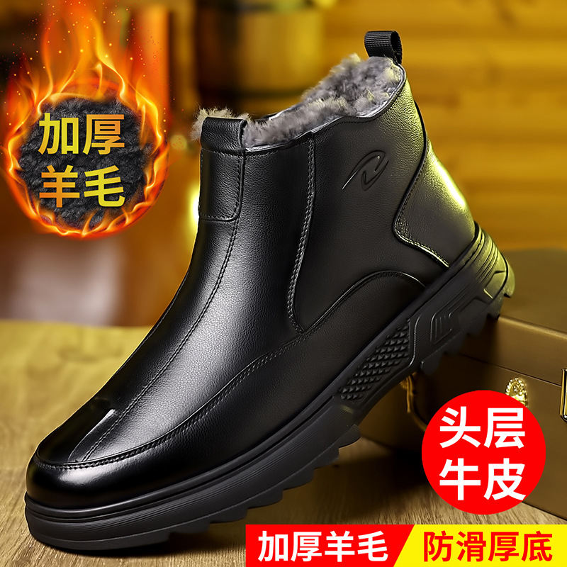 头层牛皮真皮棉鞋男鞋羊毛冬鞋加绒加厚保暖皮鞋老年爸爸防滑冬季