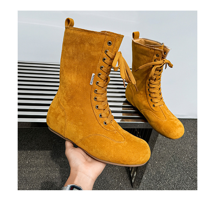 2025新款时尚马丁靴厚底增高工装靴美式高帮大头机车 46169黄色-H
