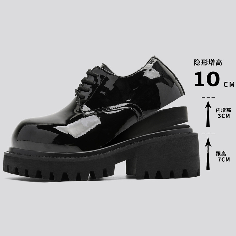 秋季男款休闲大头亮面厚底内增高10cm德比鞋73220红色 棕色-J