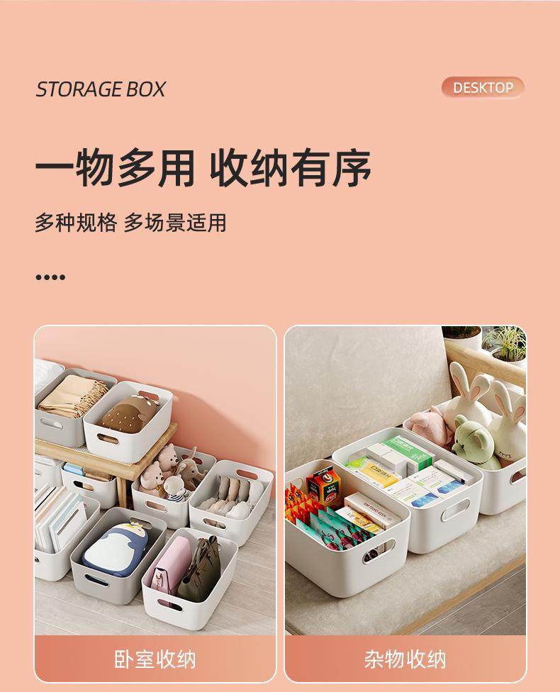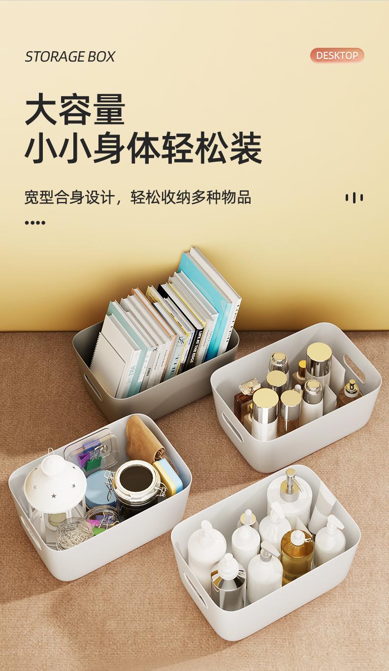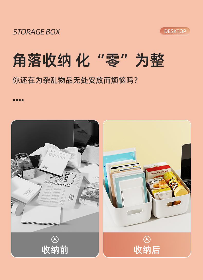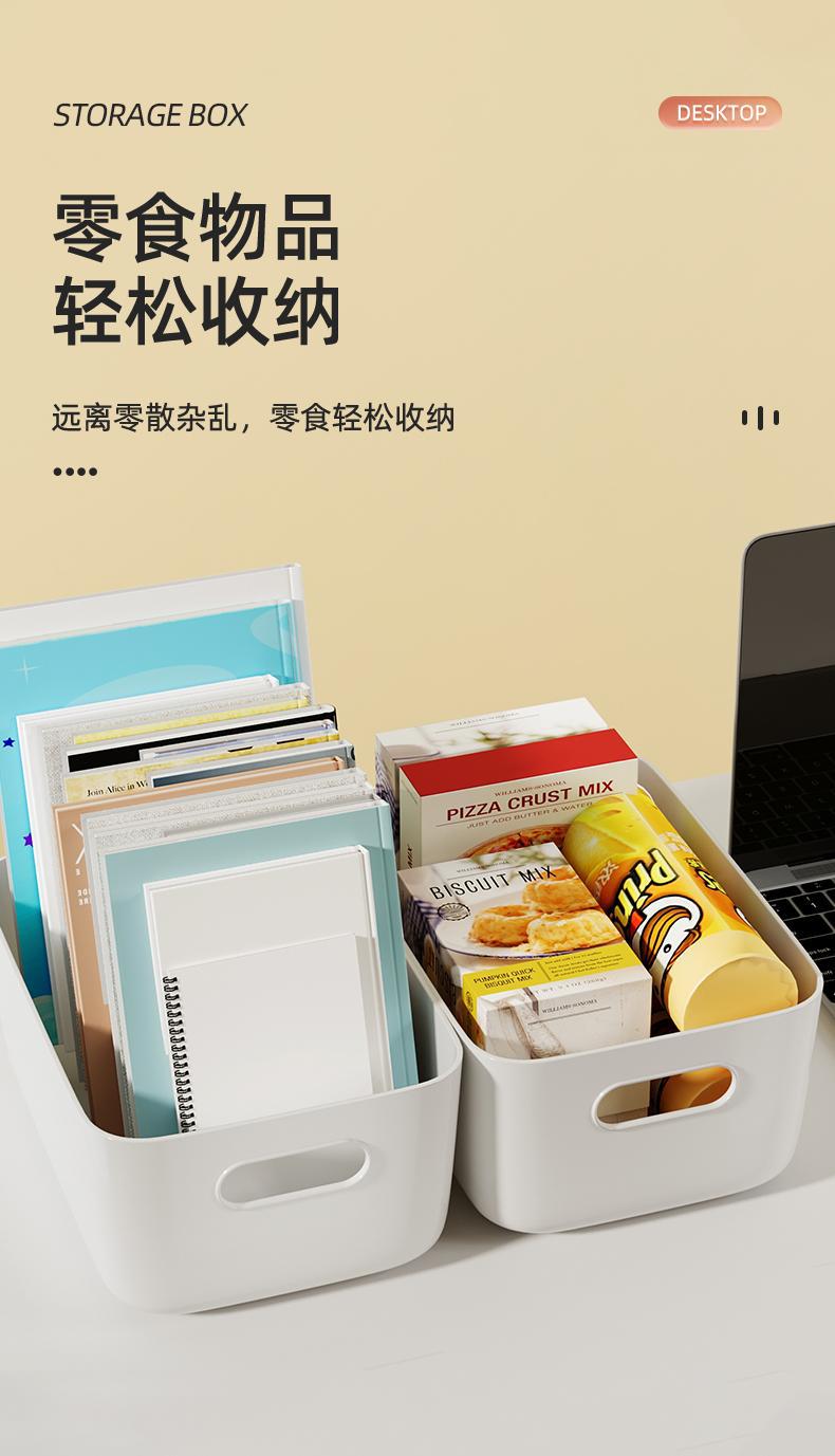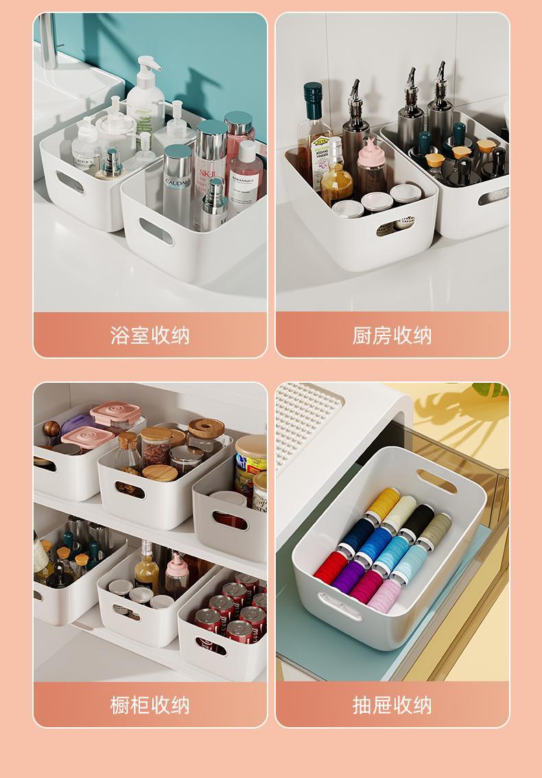 加厚收纳盒杂物收纳筐厨房柜子塑料整理箱长方形白色储物筐书桌框