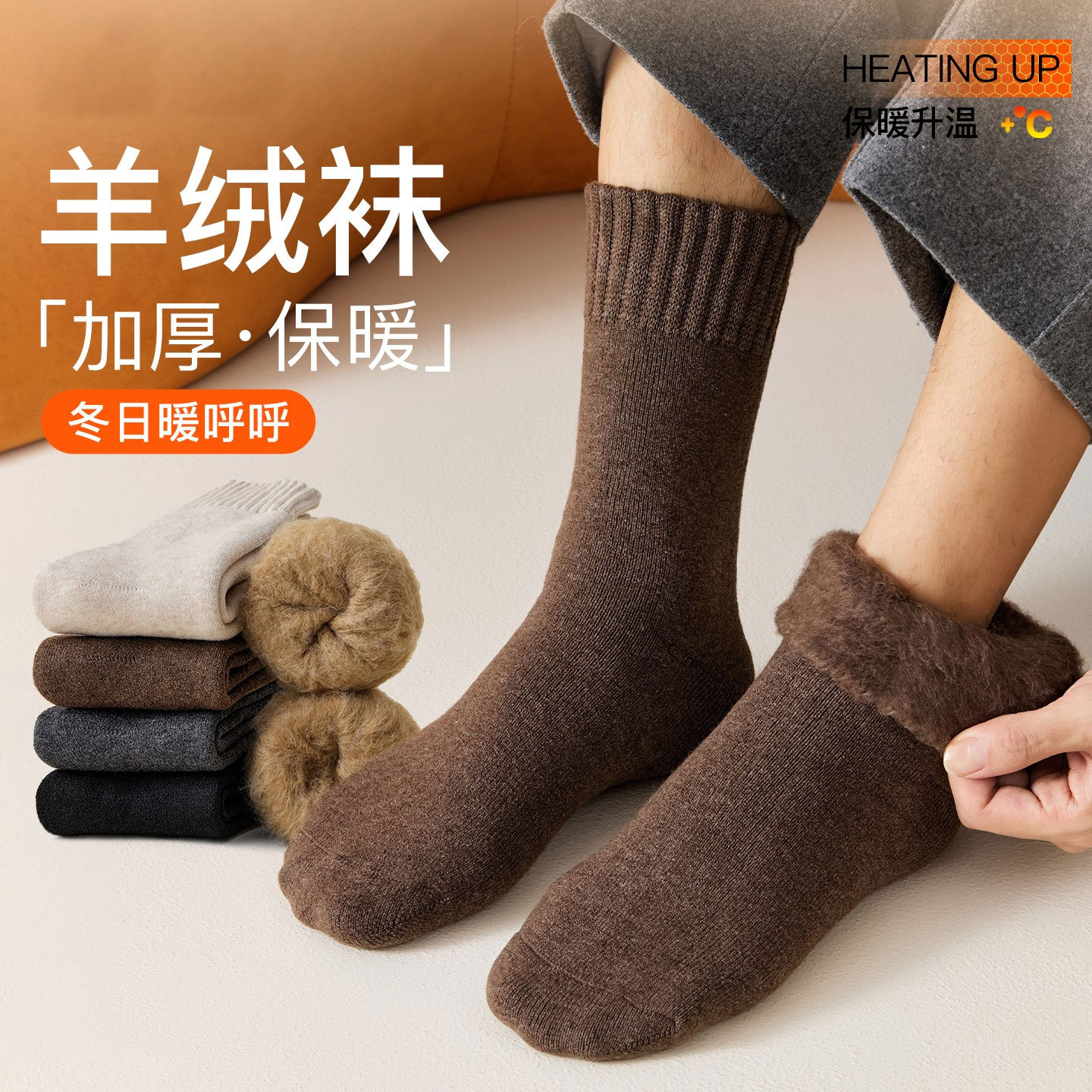 加厚羊绒袜子男秋冬款中筒袜加绒男士东北防寒保暖羊毛袜超厚长袜