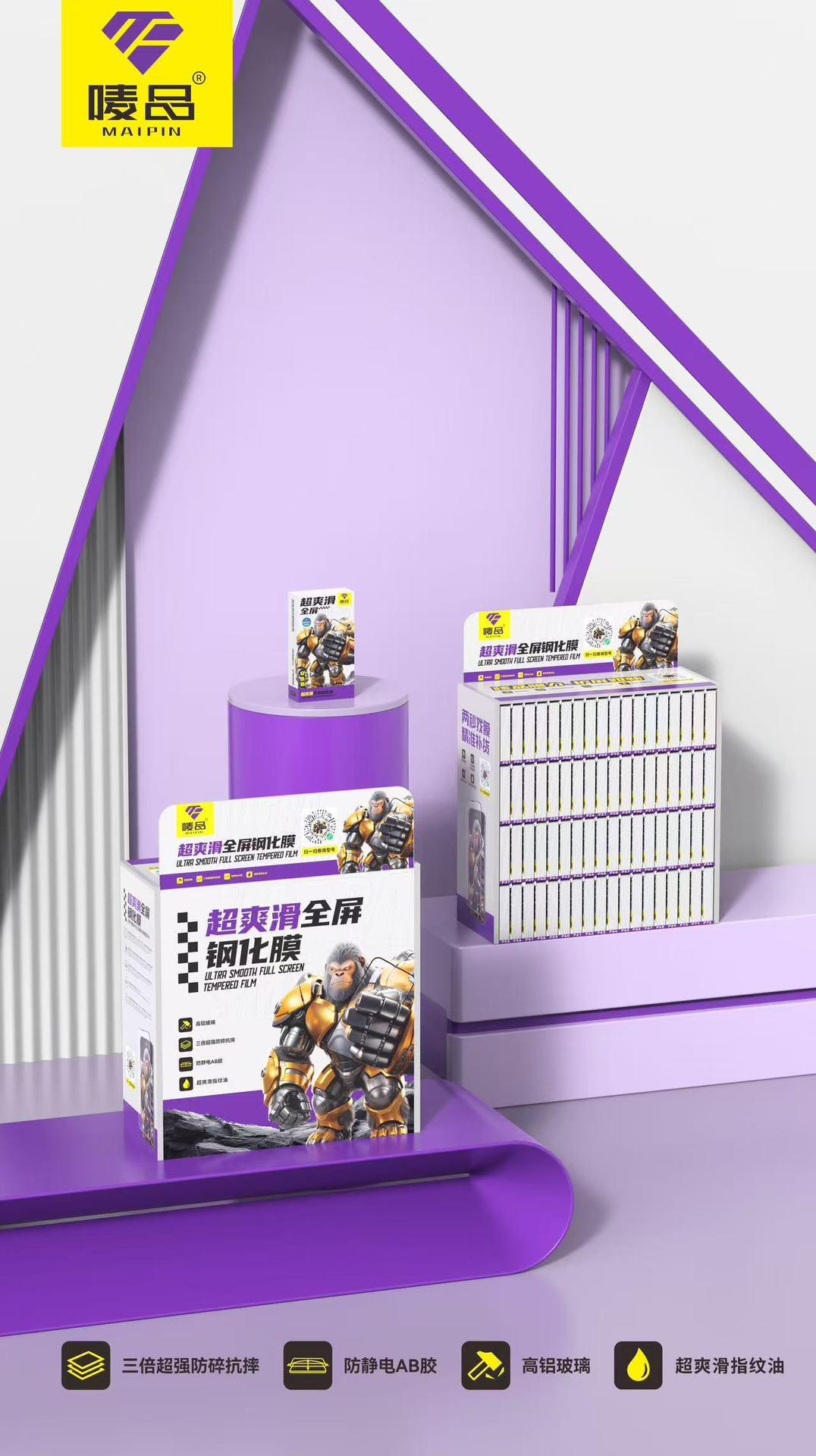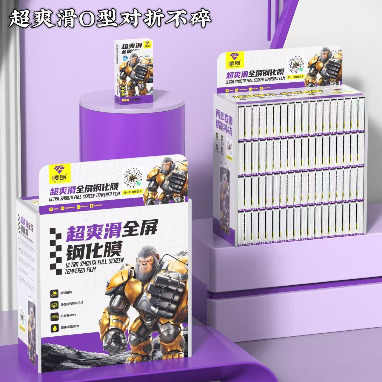 唛品·超爽滑O型对折钢化膜套装(61型号305张配箱子),唛品·超爽滑O型对折钢化膜(单张带包)