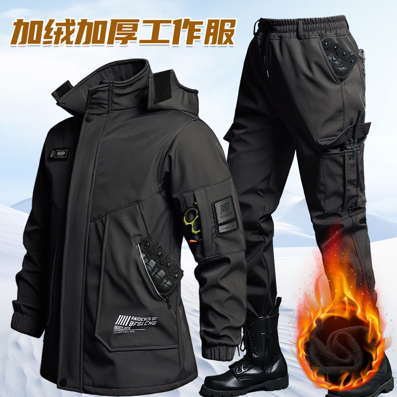冬季加绒加厚冲锋衣工作服套装男防寒保暖防水耐磨工装户外劳保服