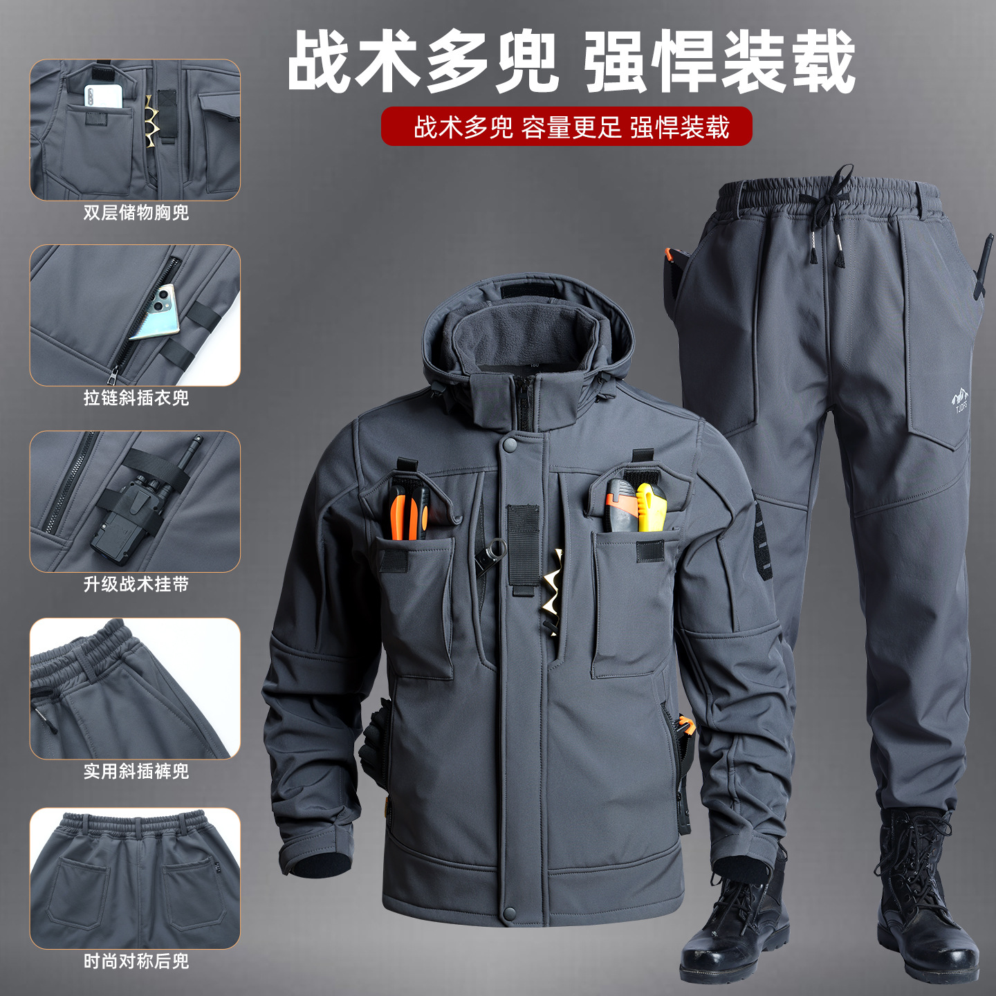 户外外套冲锋衣套装加绒加厚防水防风户外劳保工作服套装保暖工装