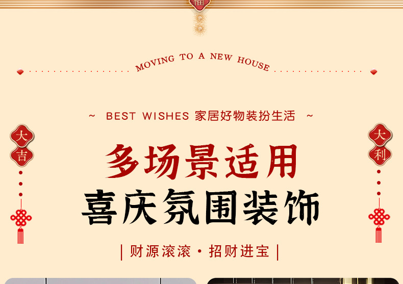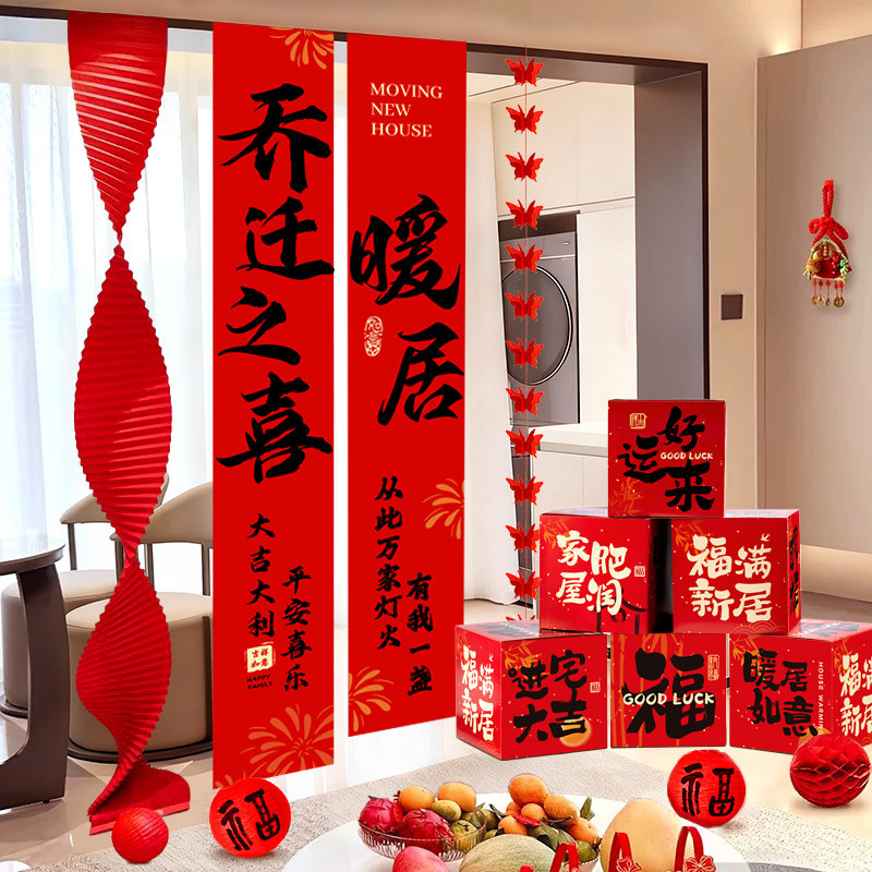 乔迁之喜装饰挂布条幅新居布置新房搬家入宅仪式用品全套新款拉花