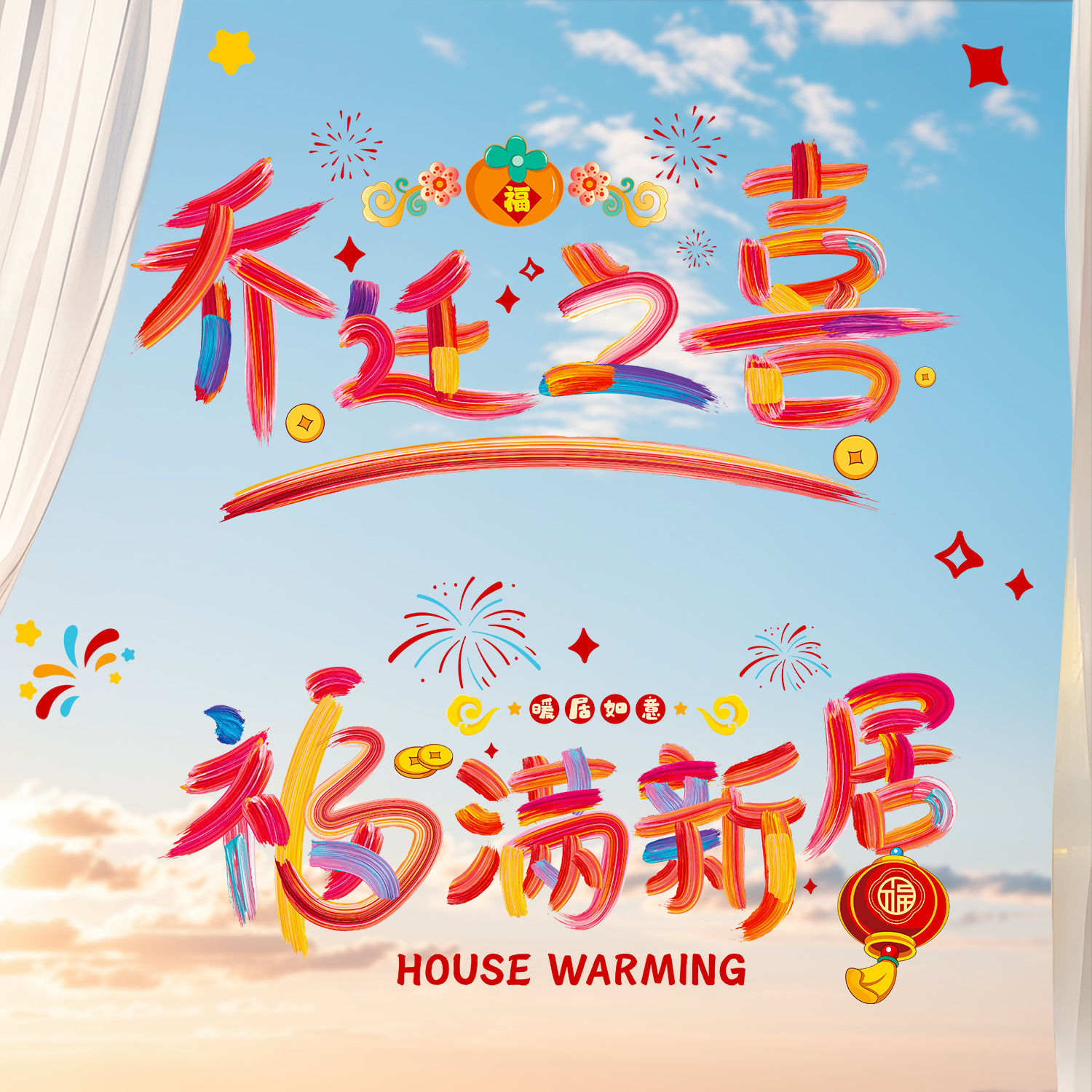乔迁之喜静电贴纸新居布置装饰用品入宅仪式搬家入宅礼物2025新款