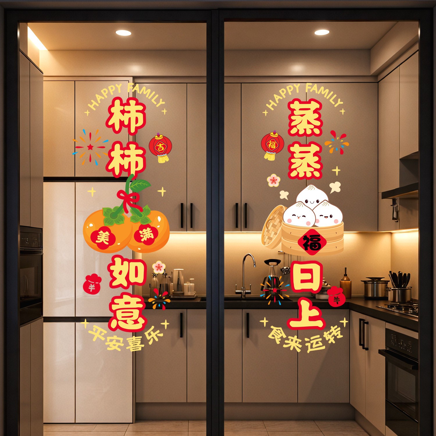 乔迁之喜窗花装饰厨房贴纸蒸蒸日上静电贴新居入宅仪式布置品全套