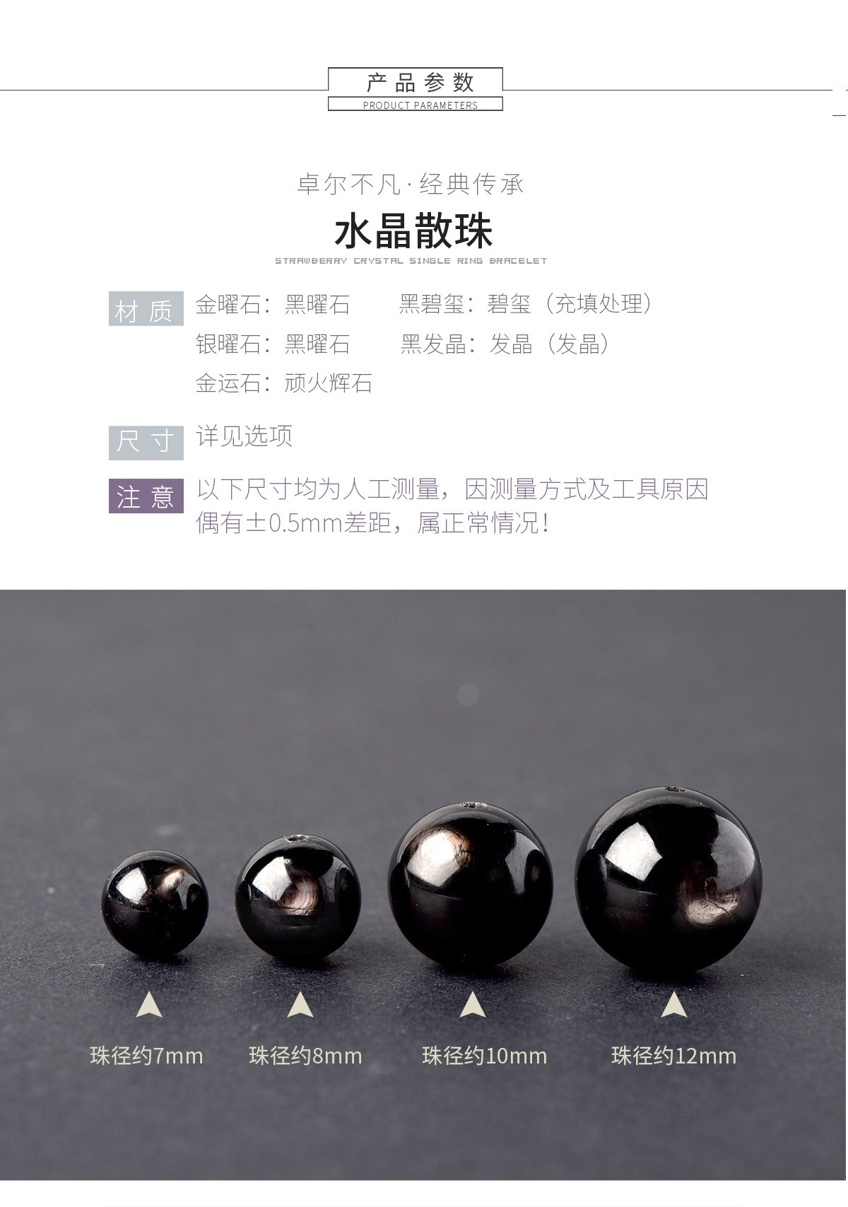 颜色 黑发晶顺发8mm/1颗,黑发晶顺发约9mm/1颗,黑发晶顺发约10mm/1颗,黑发晶顺发约11mm/1颗,黑发晶顺发约12mm/1颗,黑发晶顺发约13mm/1颗,黑发晶顺发约14mm/1颗,金运石收藏级约8mm/1颗,金运石收藏级约10mm/1颗,金运石收藏级约12mm/1颗,黑骨干约8mm/颗,黑骨干约10mm/颗,黑骨干约12mm/颗,黑极光约8mm/颗,黑极光约10mm/颗,黑极光约12mm/颗