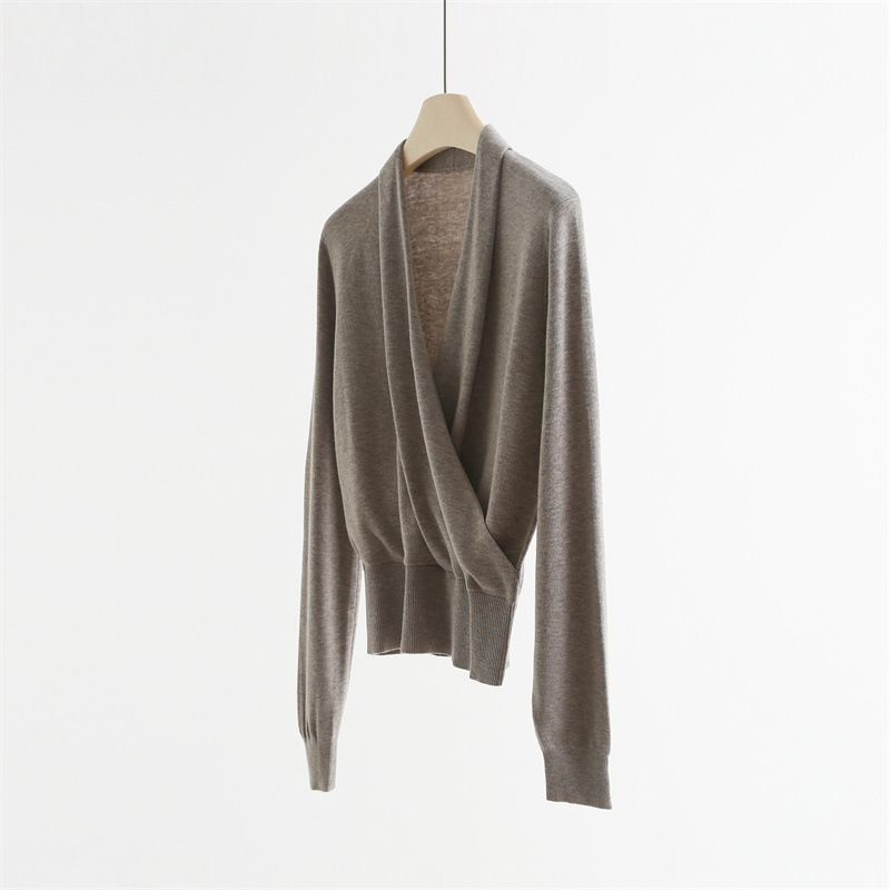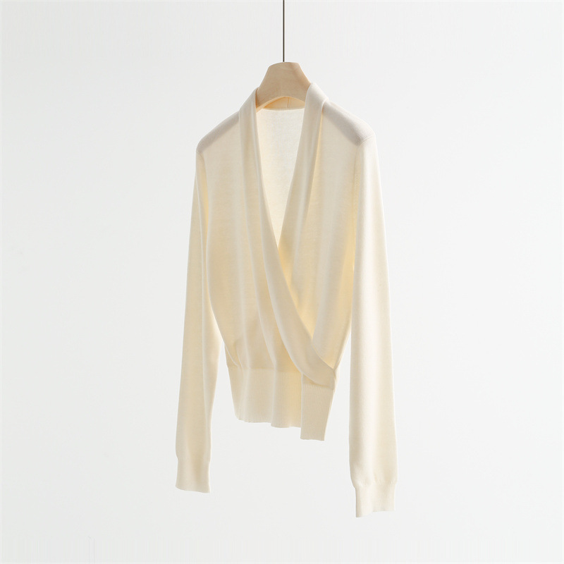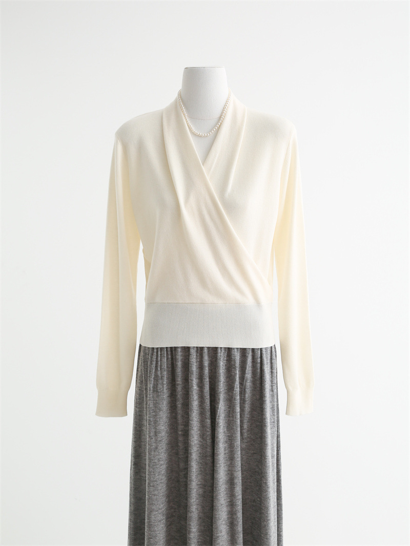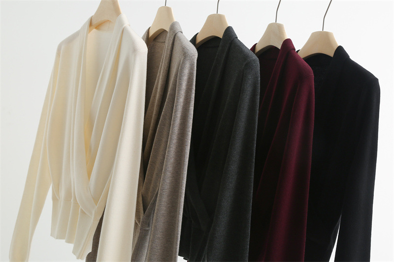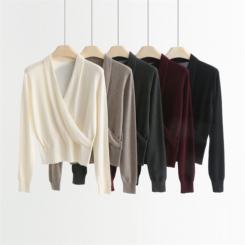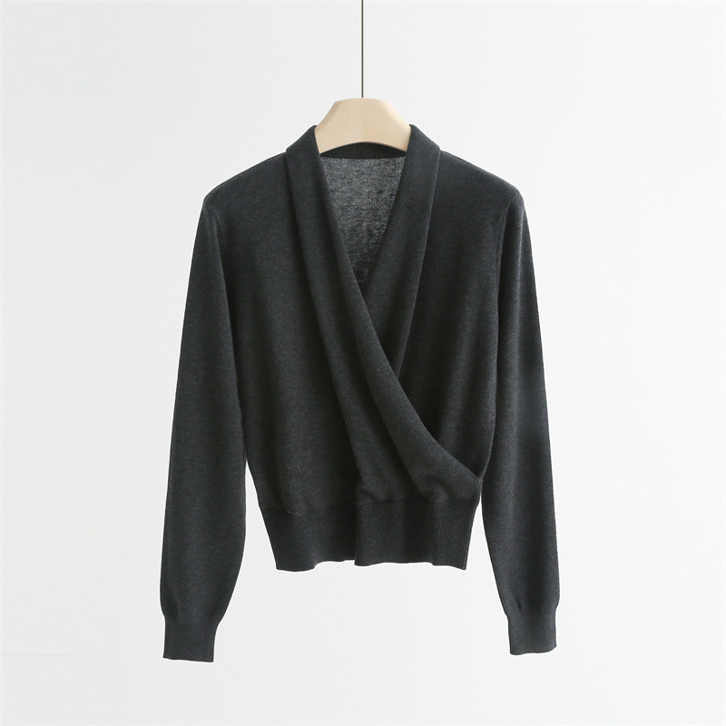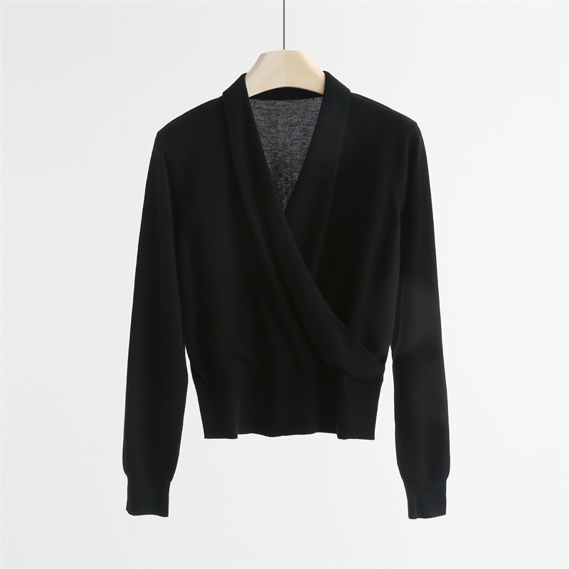 款号:QT1-35320#交叉门禁V领长袖针织衫