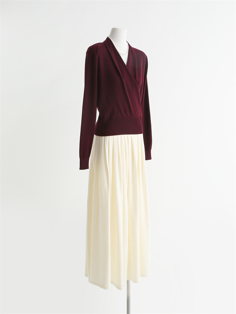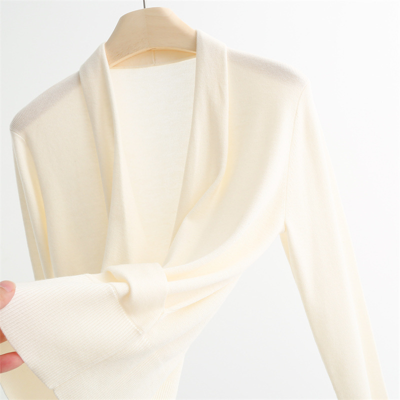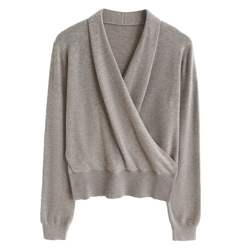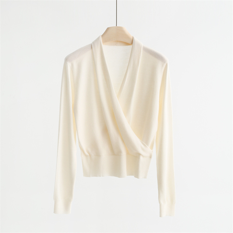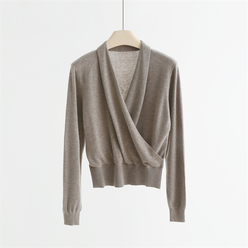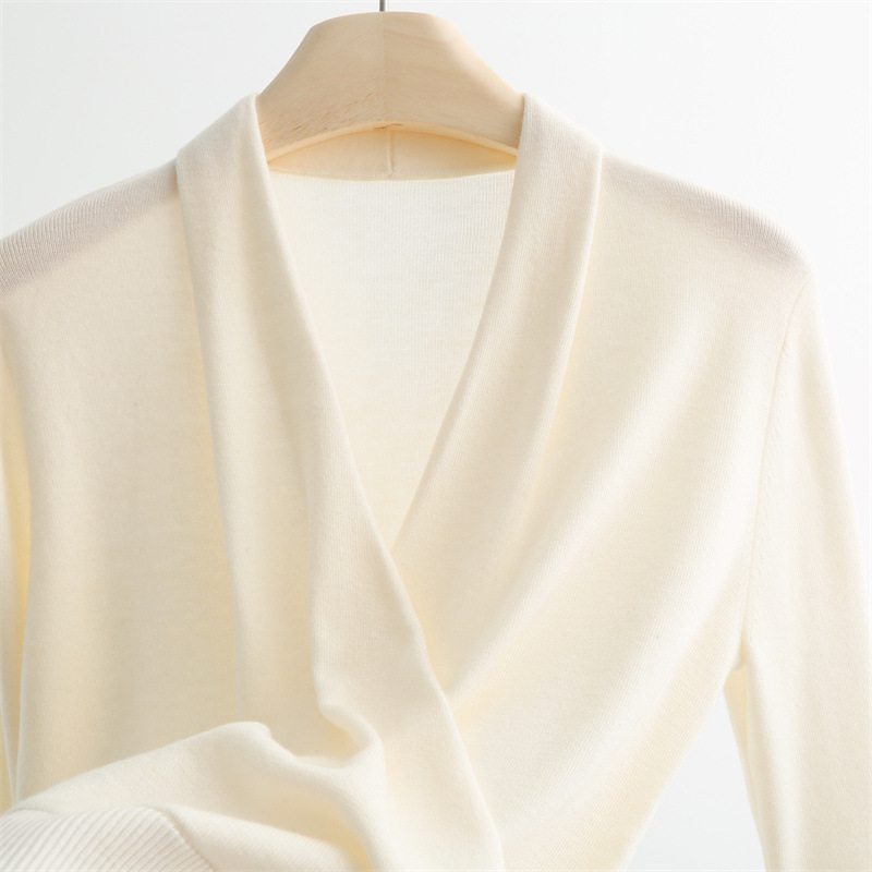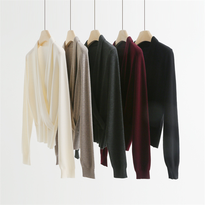 款号:QT1-35320#交叉门禁V领长袖针织衫