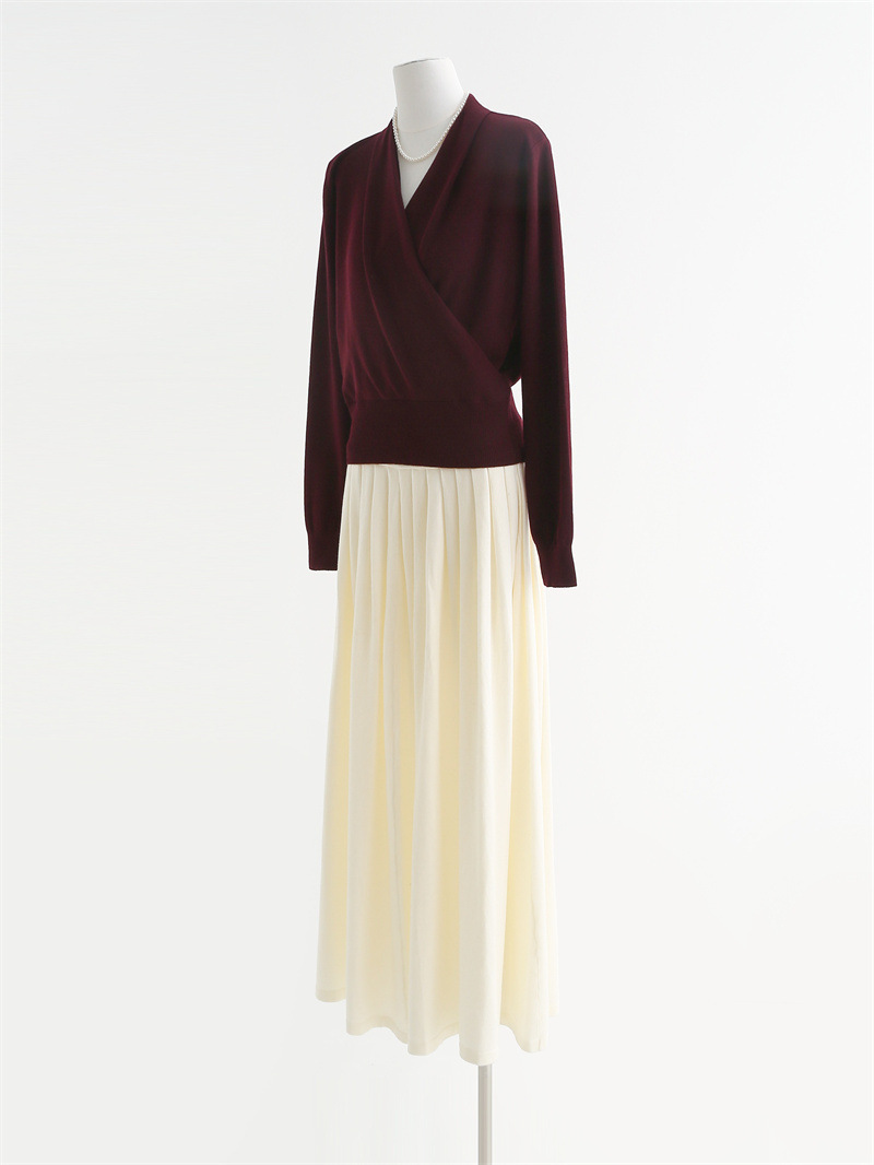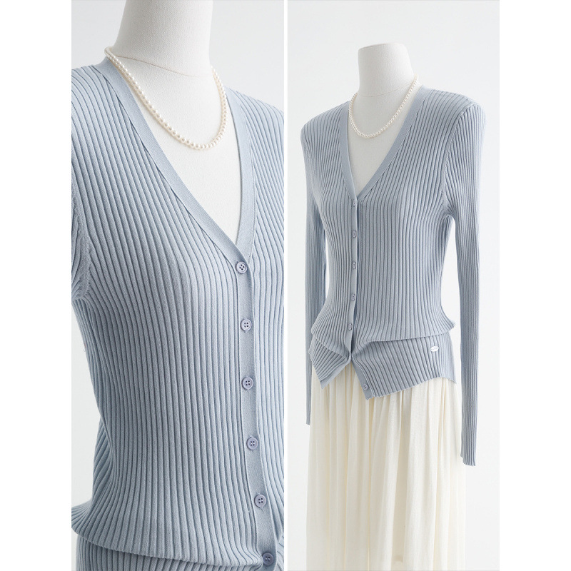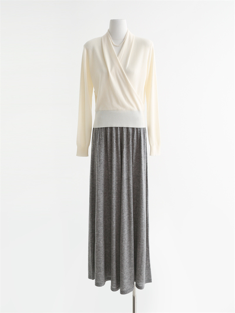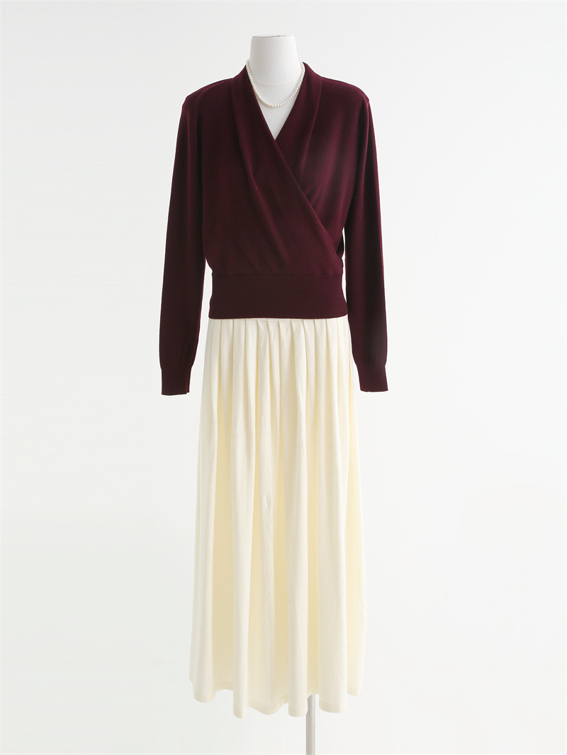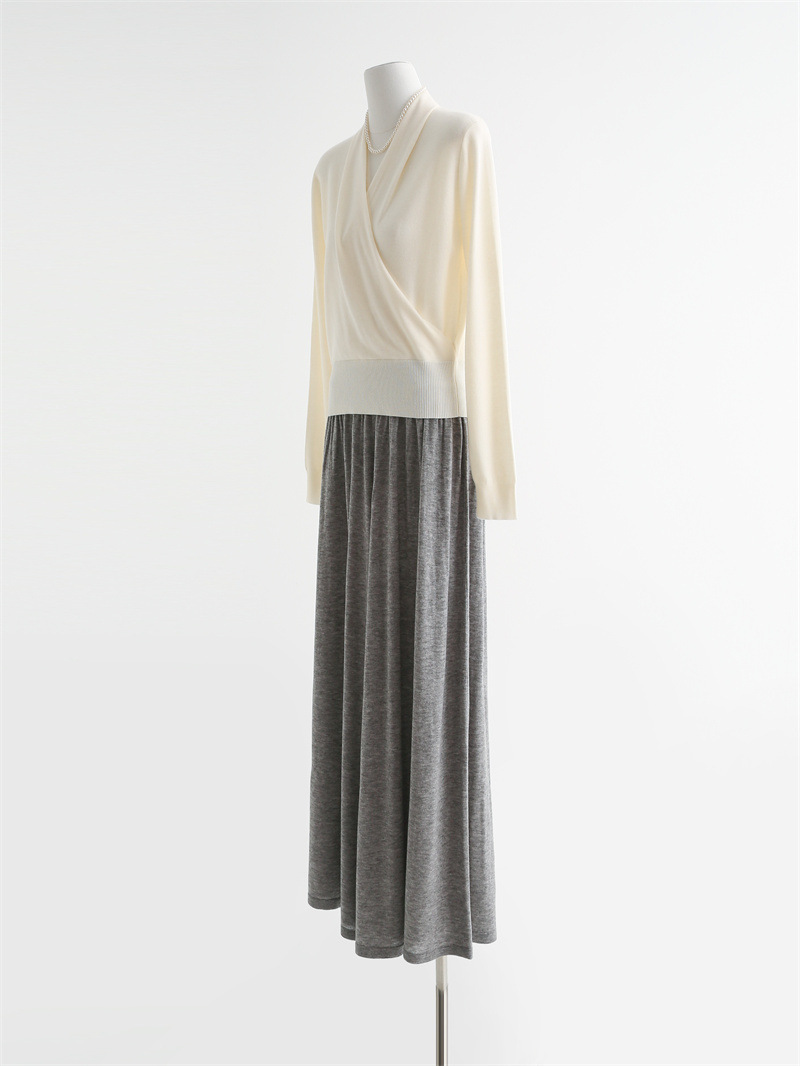款号:QT1-35320#交叉门禁V领长袖针织衫