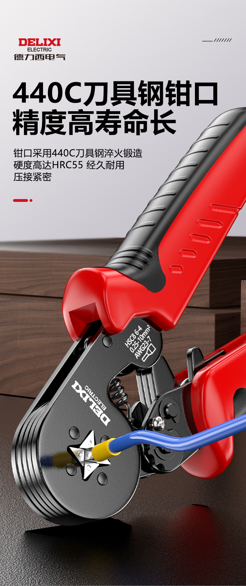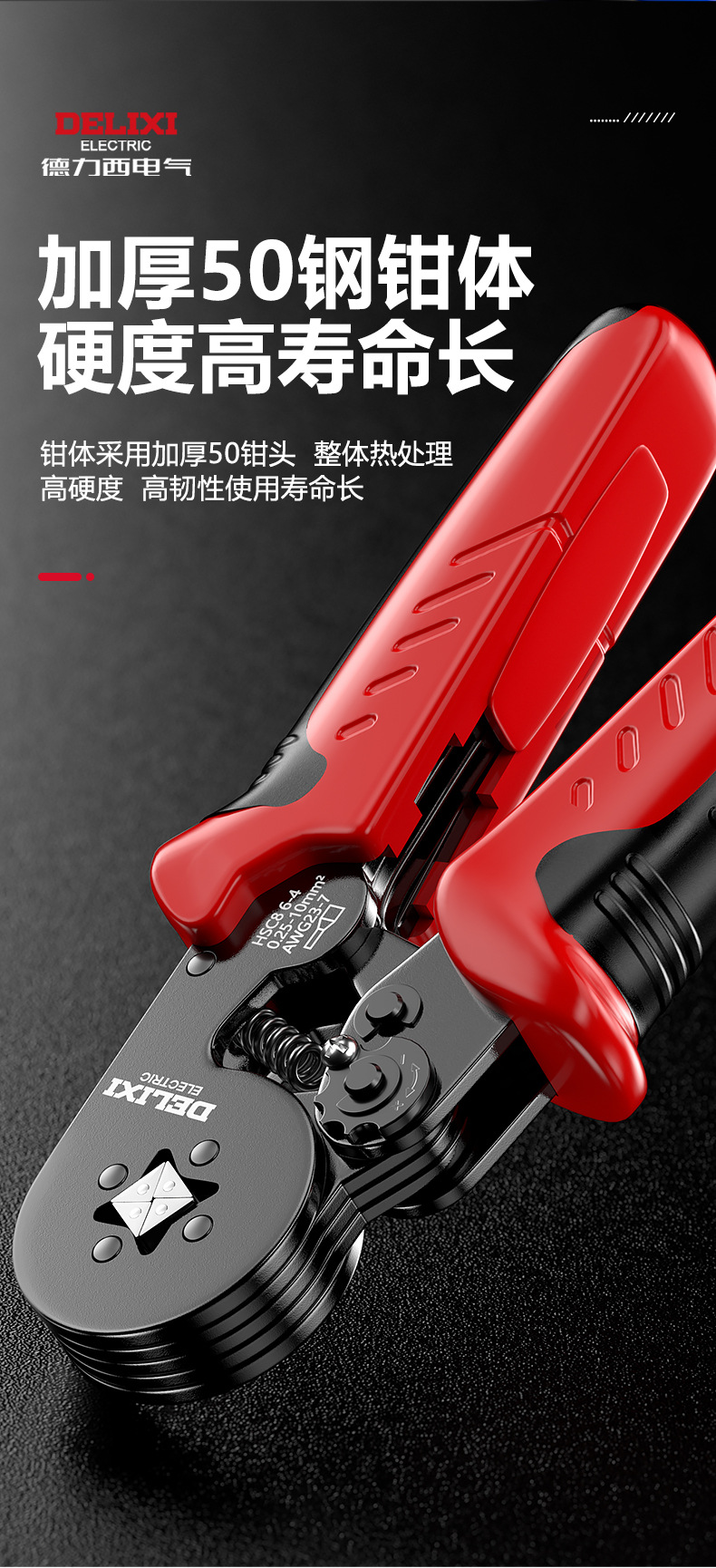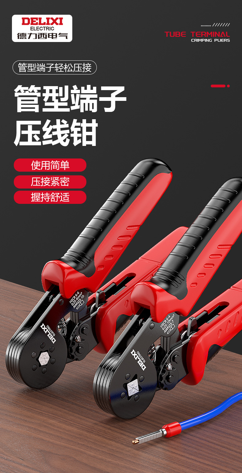 德力西电气压线钳6-4管型针型段子压接钳电工接线冷压端子压线钳