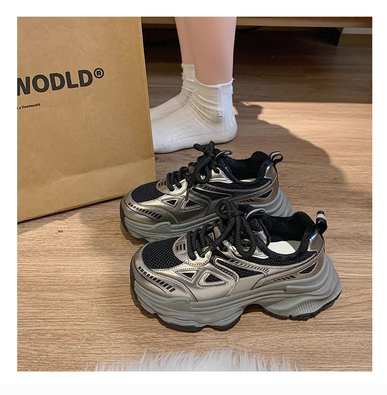 轻便小个子加绒加厚老爹鞋女百搭保暖棉鞋2025新款厚底增高运动鞋