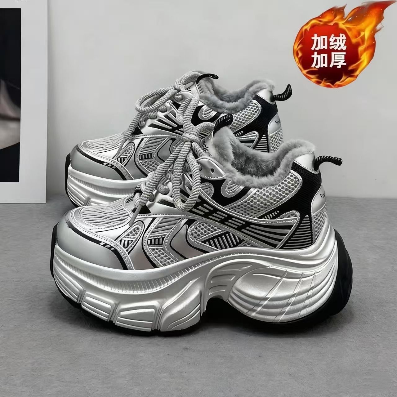 加绒爆款老爹鞋女2025冬季新款百搭学生保暖大棉鞋厚底运动休闲鞋