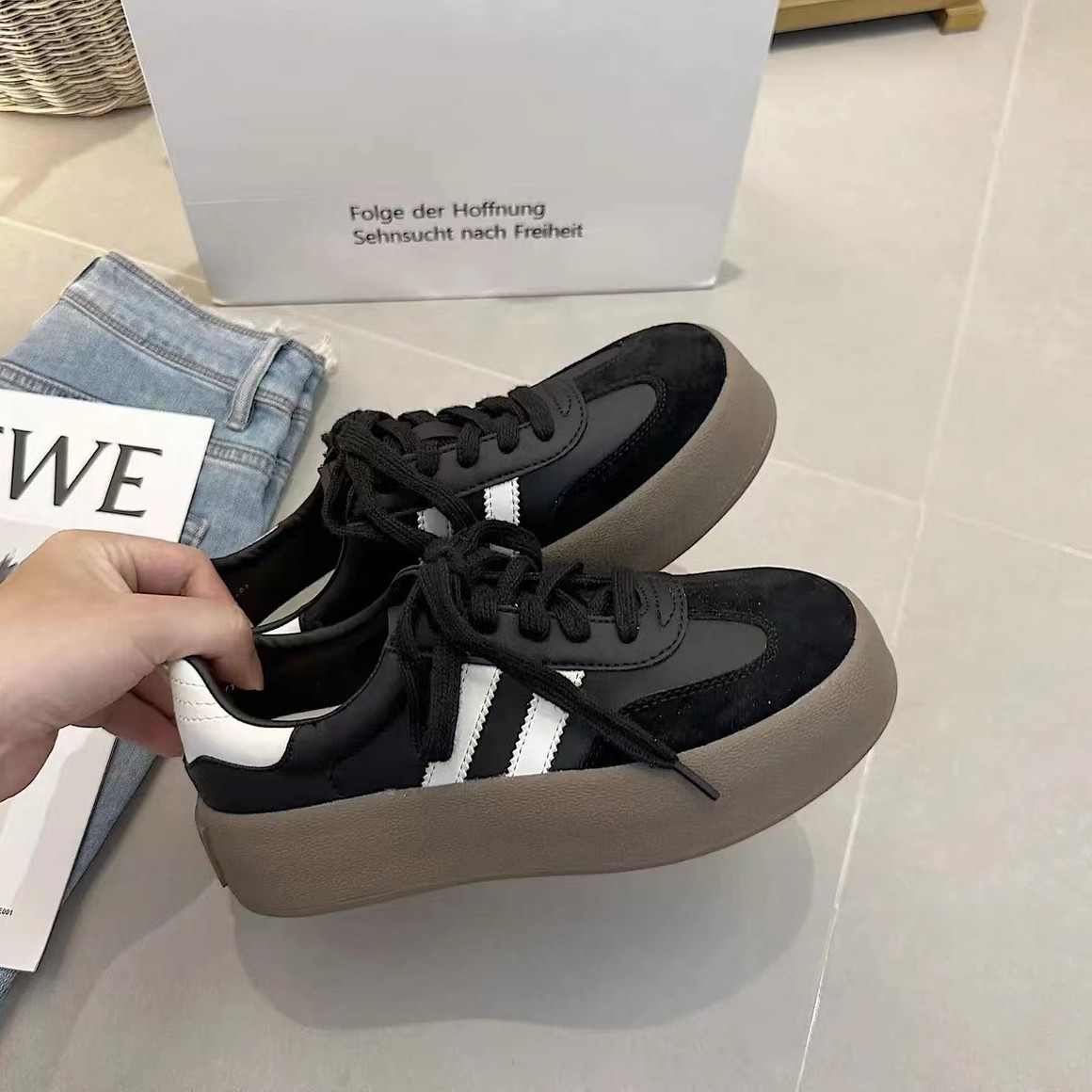 厚底ドイツ訓練靴、学生スニーカー、韓国風万能カジュアルスポーツシューズ、2025年新作白靴、婦人靴