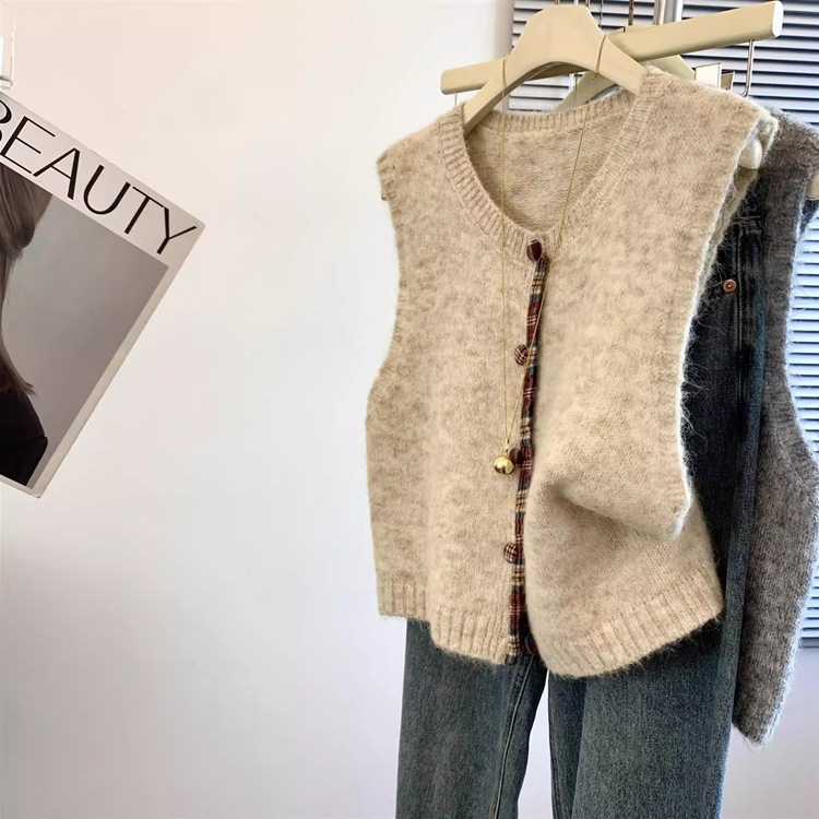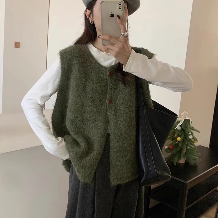 复古百搭毛绒绒马甲女背心韩系简约软糯毛衣女宽松叠穿针织坎肩