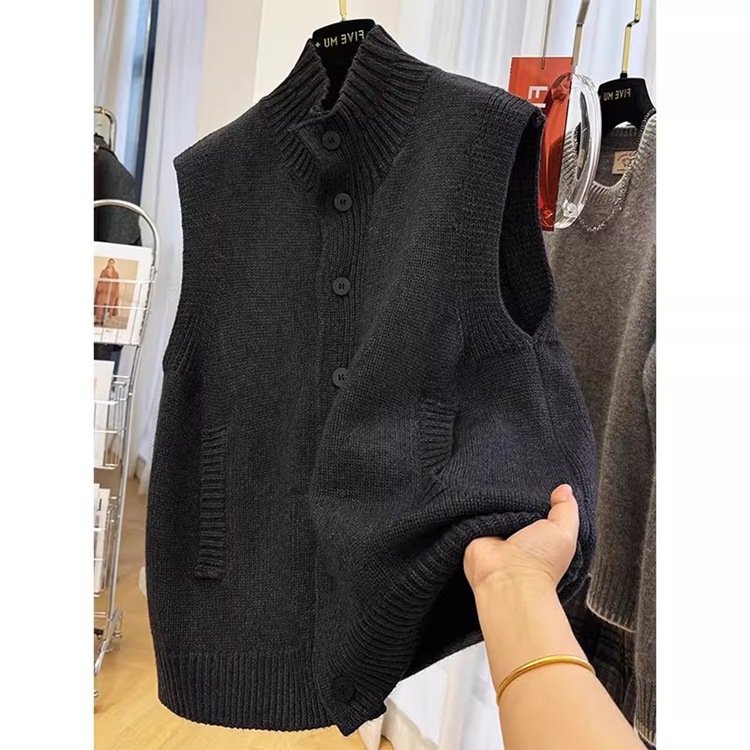 2025秋冬加厚单排扣半高领马甲背心女大码宽松百搭毛衣上衣