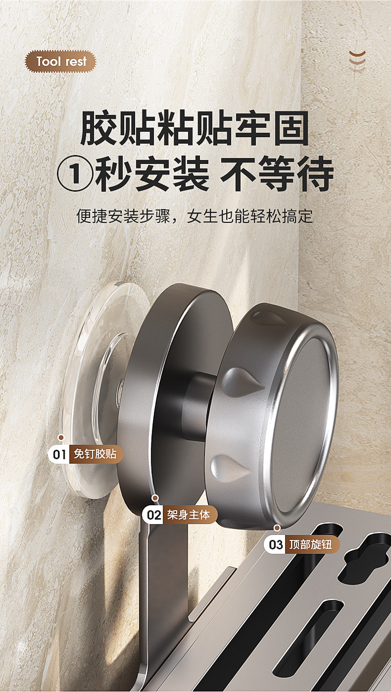 吸盤釘なし壁掛け式キッチン刃物台穴なし多機能壁掛け家庭用箸収納棚