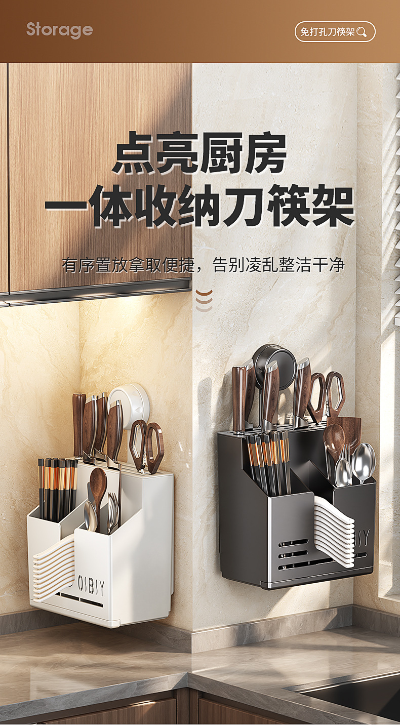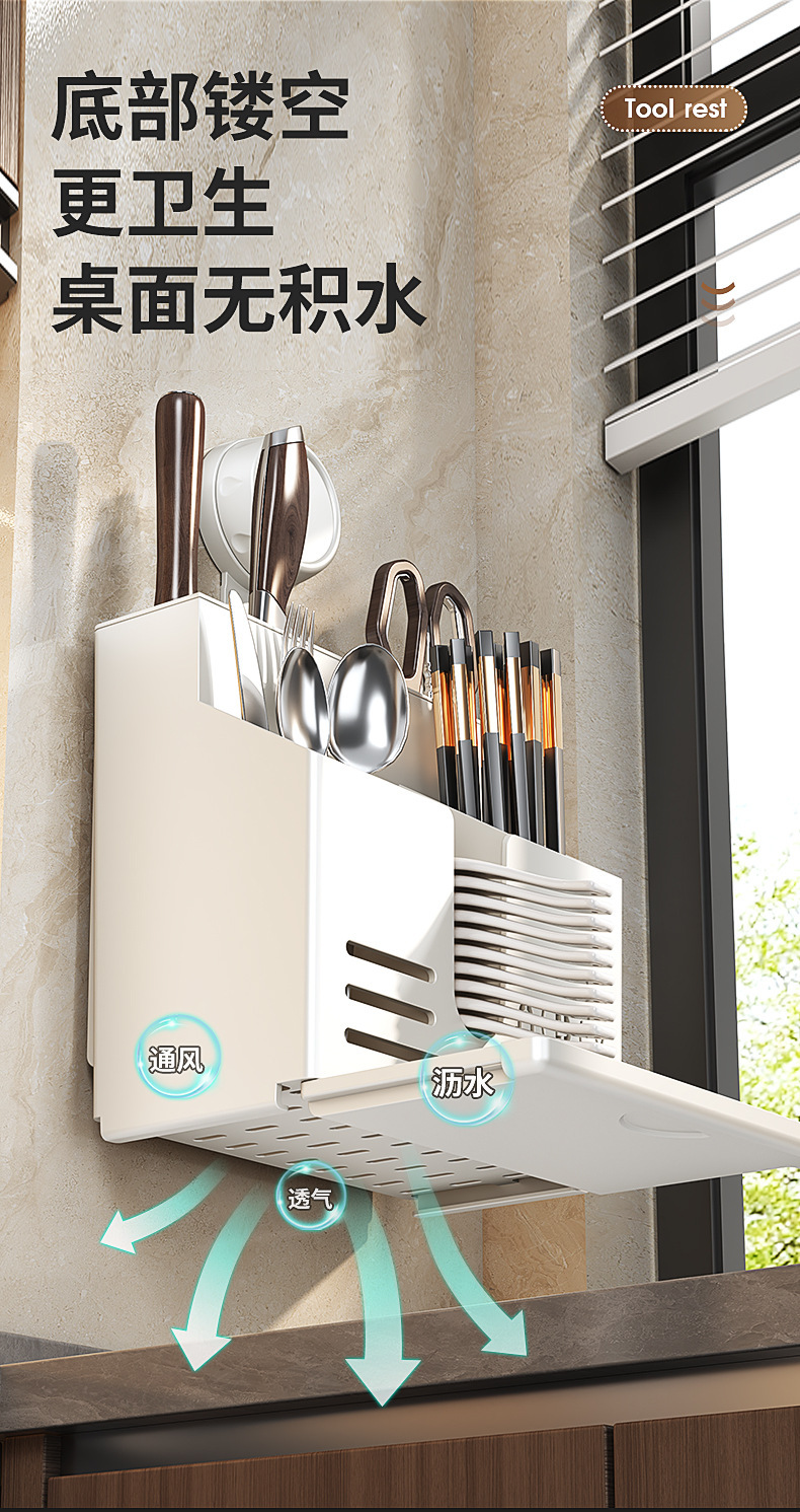 厨房刀具用品壁挂式多功能刀架置物架免打孔筷笼一体收纳架筷子筒