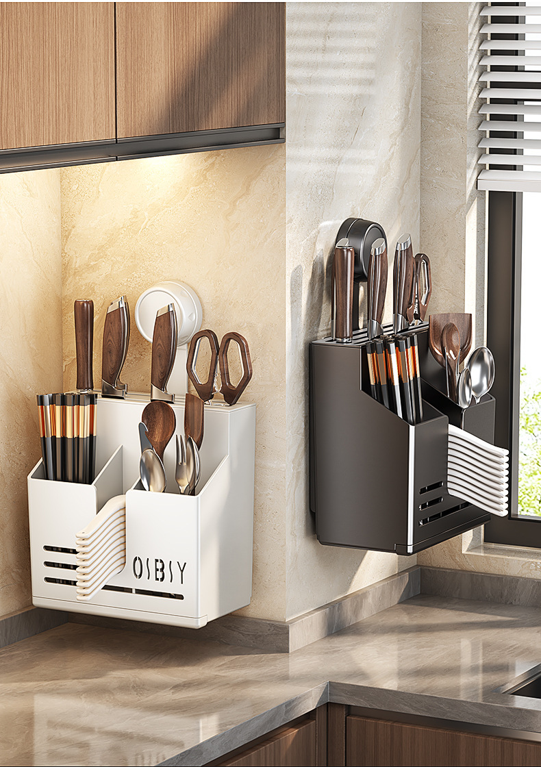 厨房筷笼刀架一体刀架筷子筒收纳多功能刀具筷子勺子置物架壁挂式