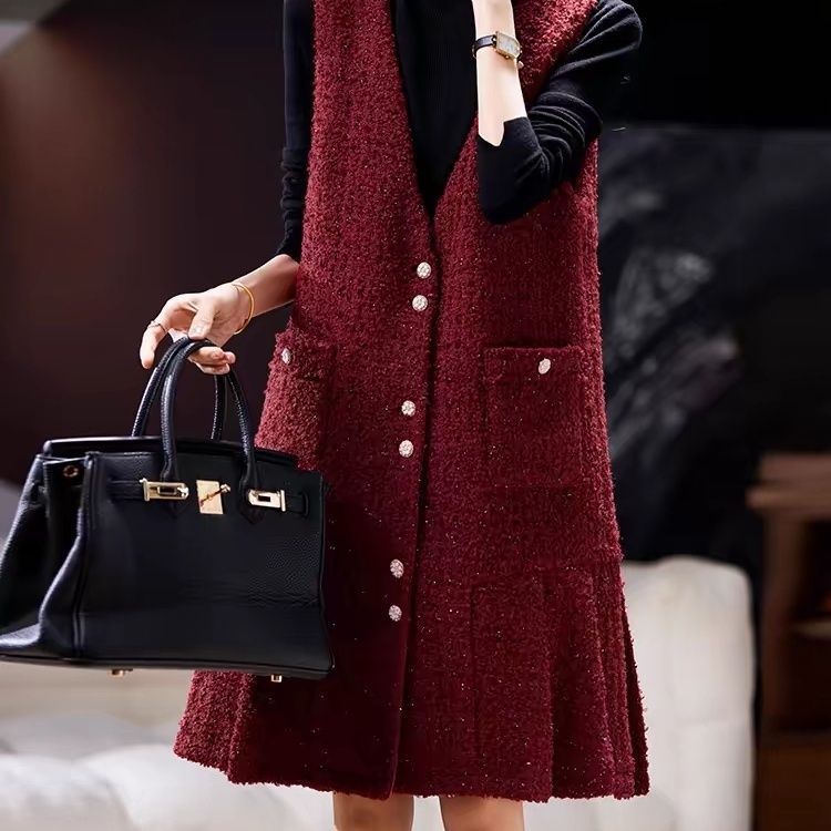 UNMUN红色小香风连衣裙秋冬2025新款本命年女高级感毛呢马甲背心
