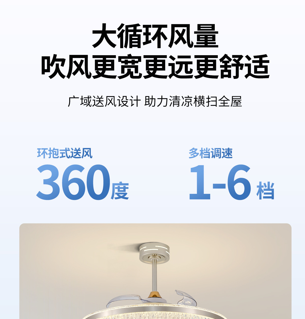 隐形风扇灯中古风卧室护眼吸顶灯智能六档变频吊扇灯中山灯具412L