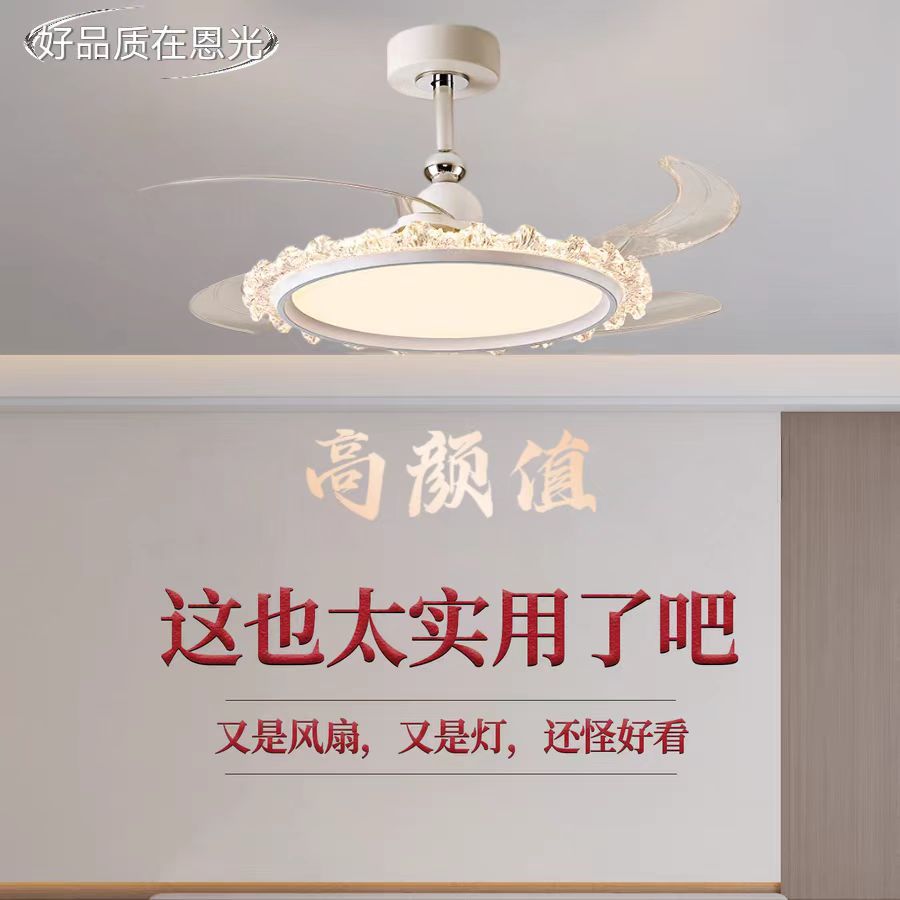 跨境 风扇灯吊扇灯隐形餐厅吊灯轻奢高级感意式卧室饭厅吧台餐桌