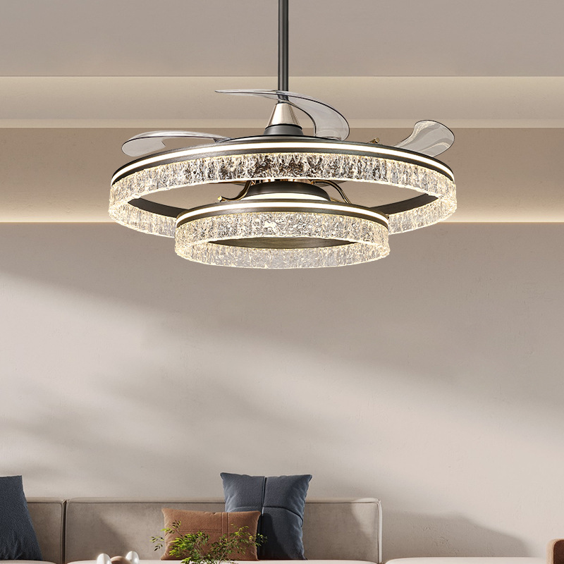 インビジブルファンライト2025新型ライトラグジュアリーリビングルームダイニングルームアイスクラックル天井扇風機ライト家庭用一体型扇風機ライト