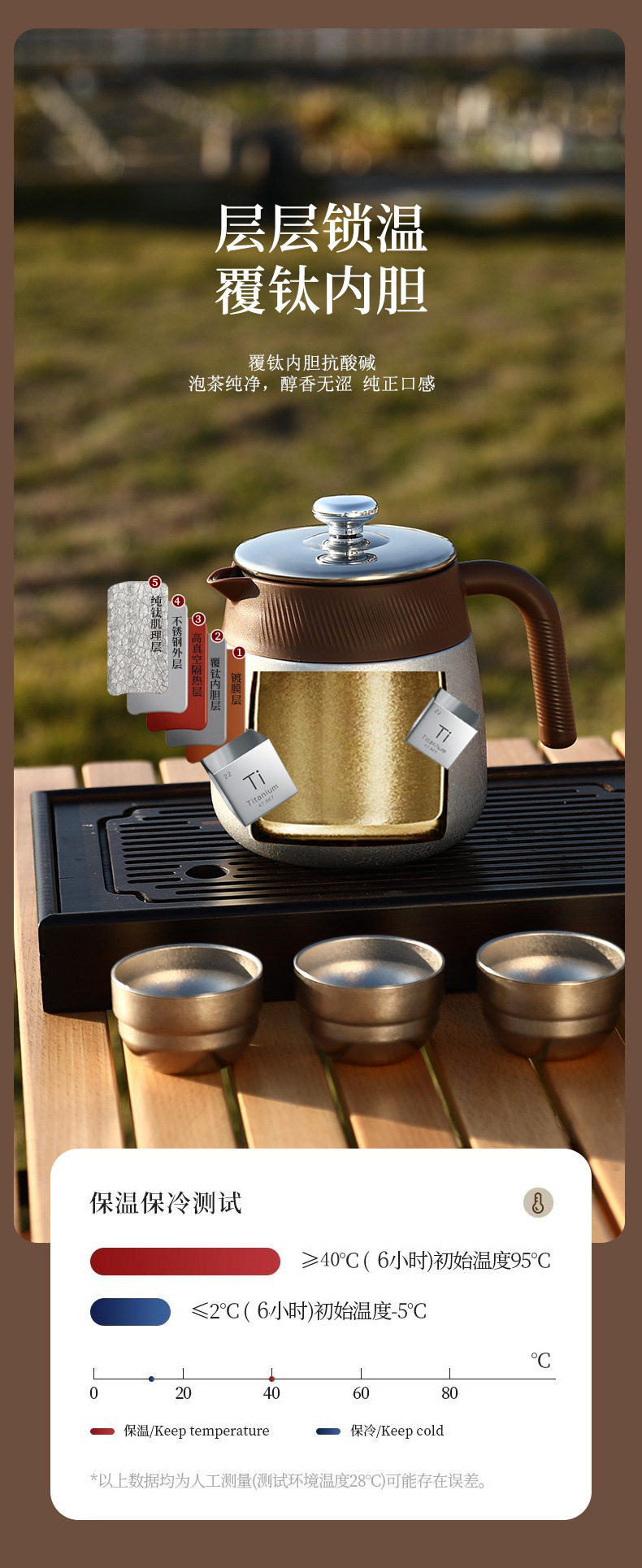 新款覆钛内胆焖茶壶茶水分离家用热水壶商务礼品保温杯咖啡壶